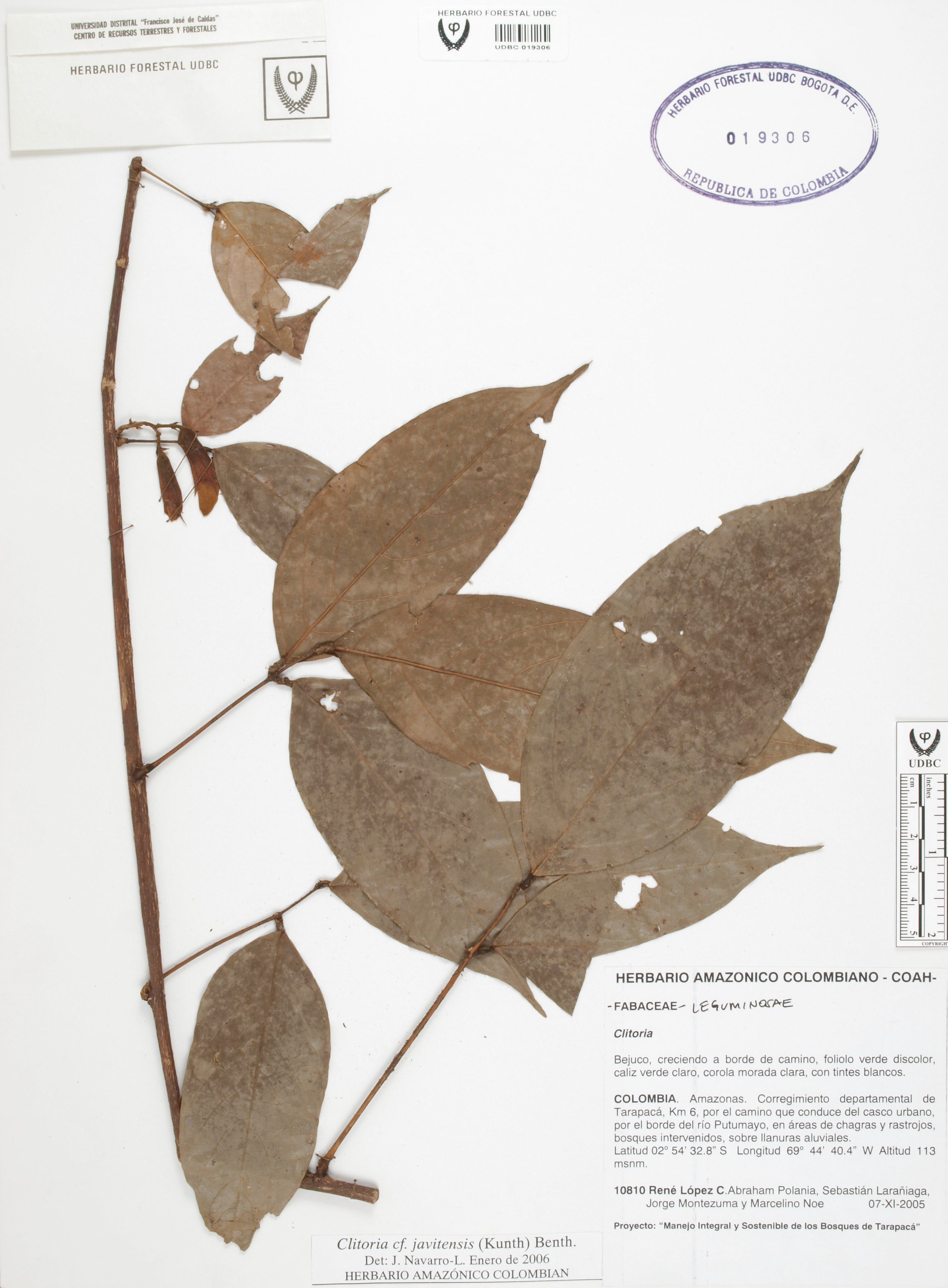 Fotografía del ejemplar López, R. 10810, determinado como Clitoria javitensis en el año 2006