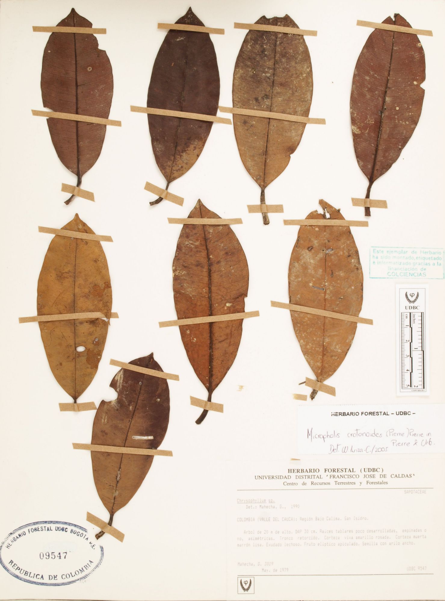 Fotografía del ejemplar Mahecha, G. 3019, determinado como Micropholis crotonoides en el año 1990