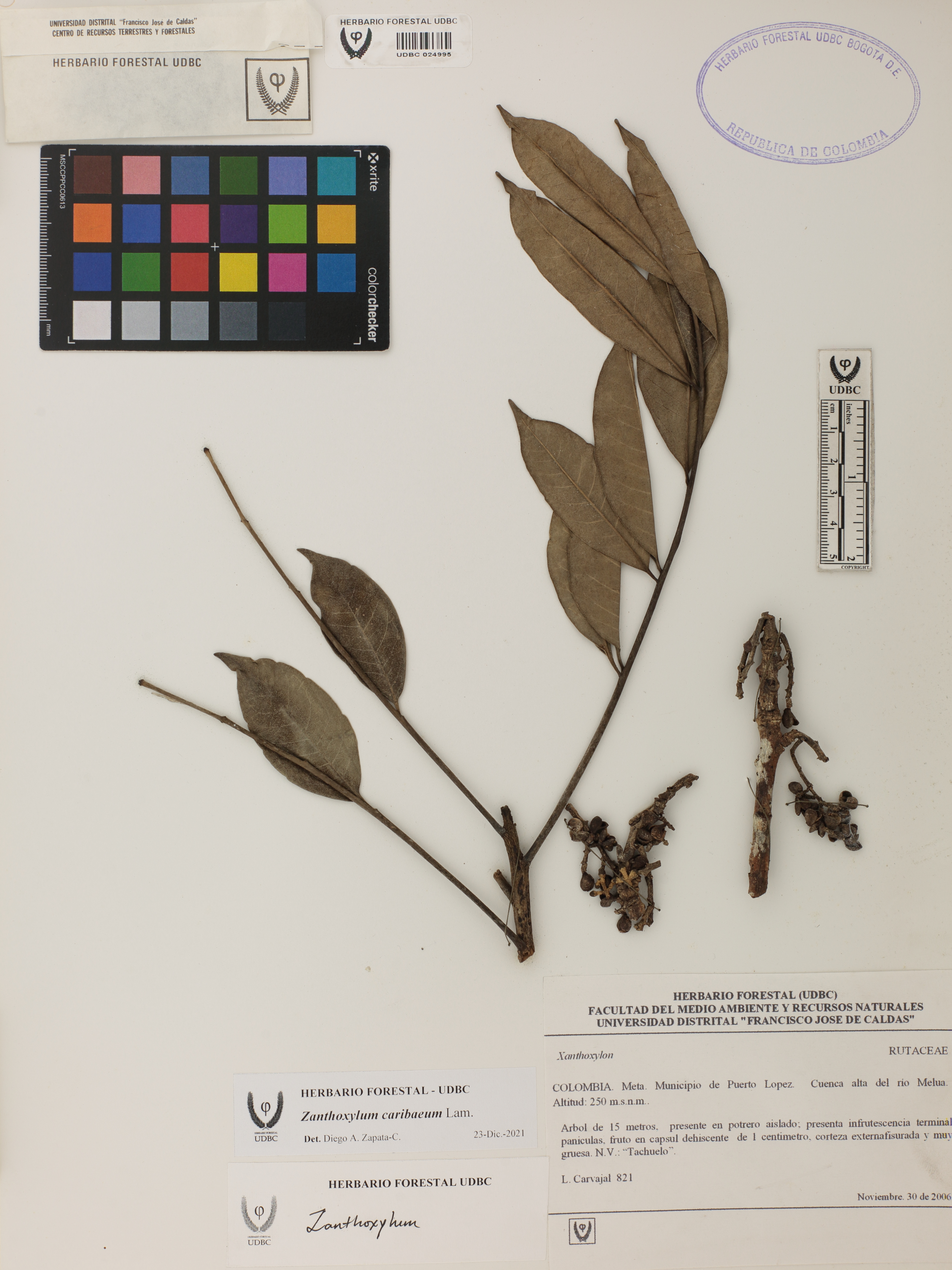 Fotografía del ejemplar Carvajal, L. 821, determinado como Zanthoxylum caribaeum en el año 2021