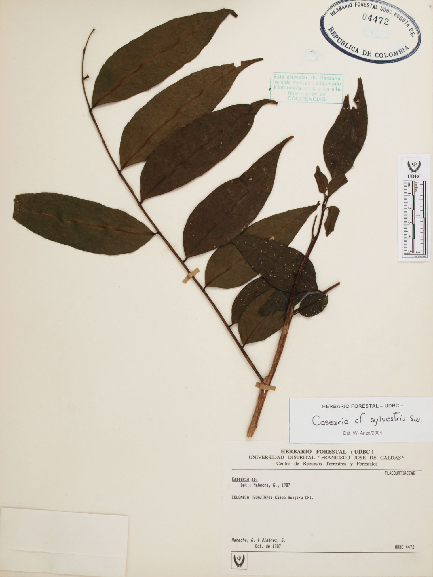 Fotografía del ejemplar Mahecha, G., determinado como Casearia sylvestris en el año 2004