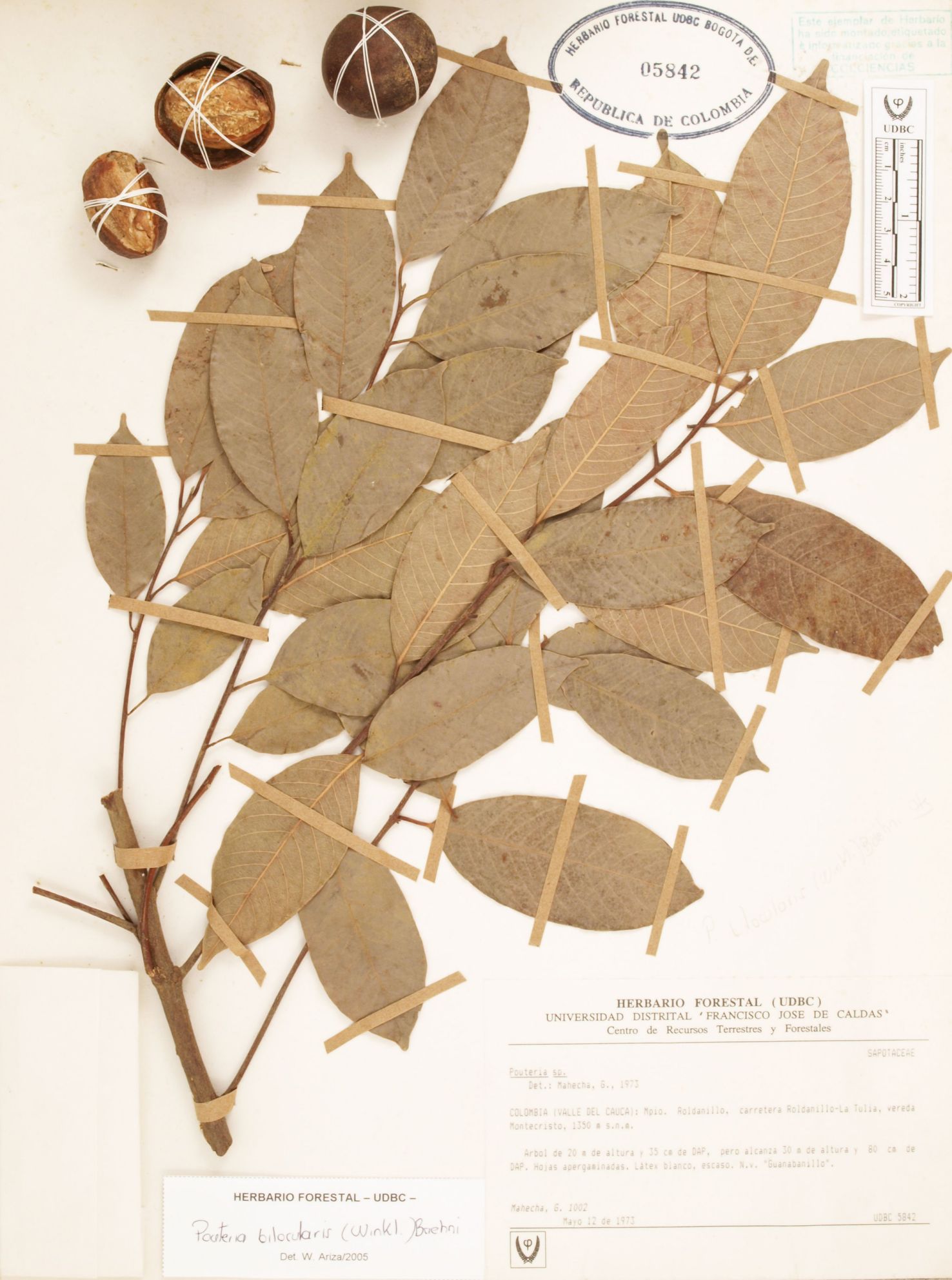 Fotografía del ejemplar Mahecha, G. 1002, determinado como Pouteria bilocularis en el año 2005