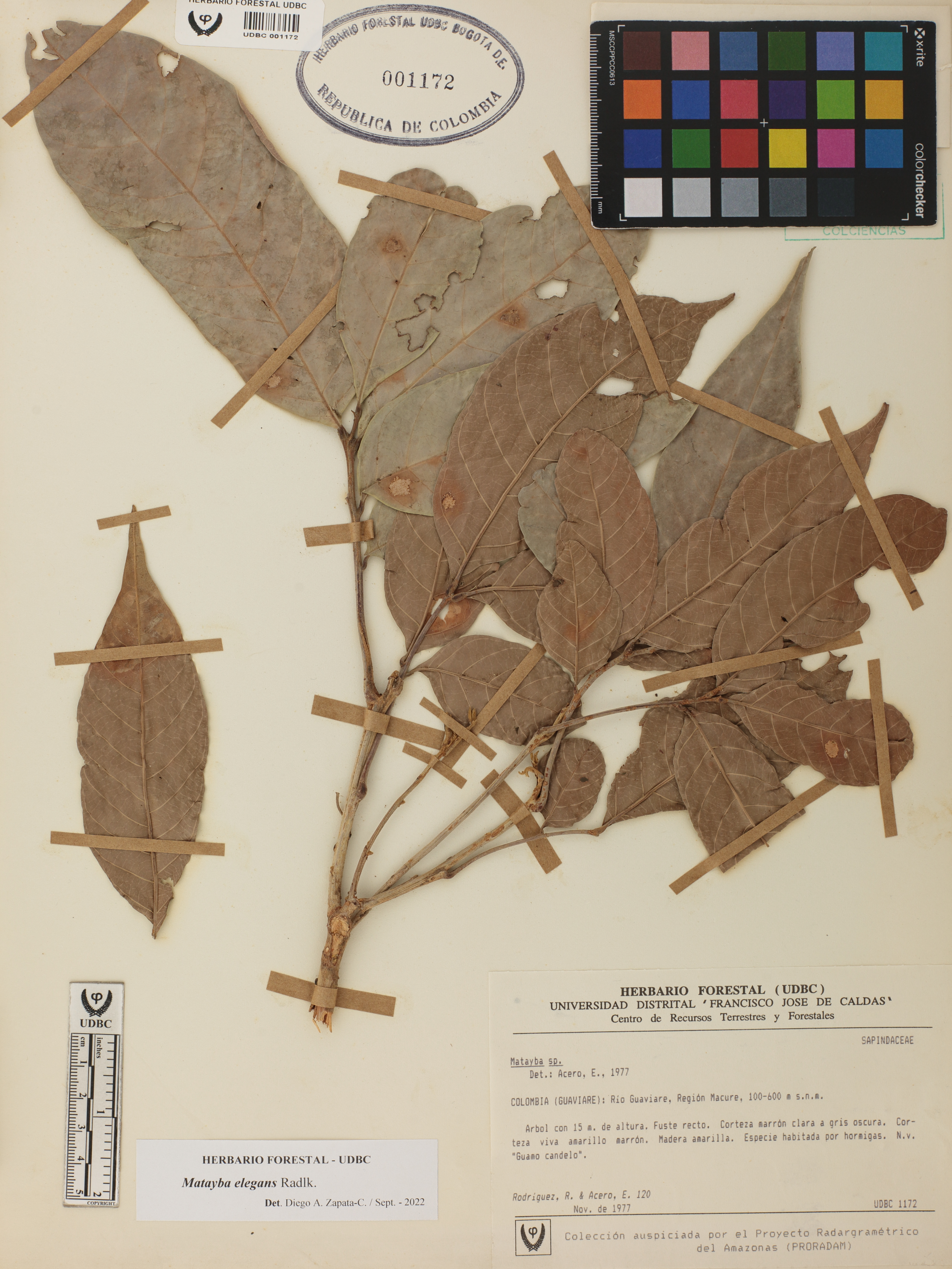 Fotografía del ejemplar Rodríguez, R. 120, determinado como Matayba elegans en el año 2022