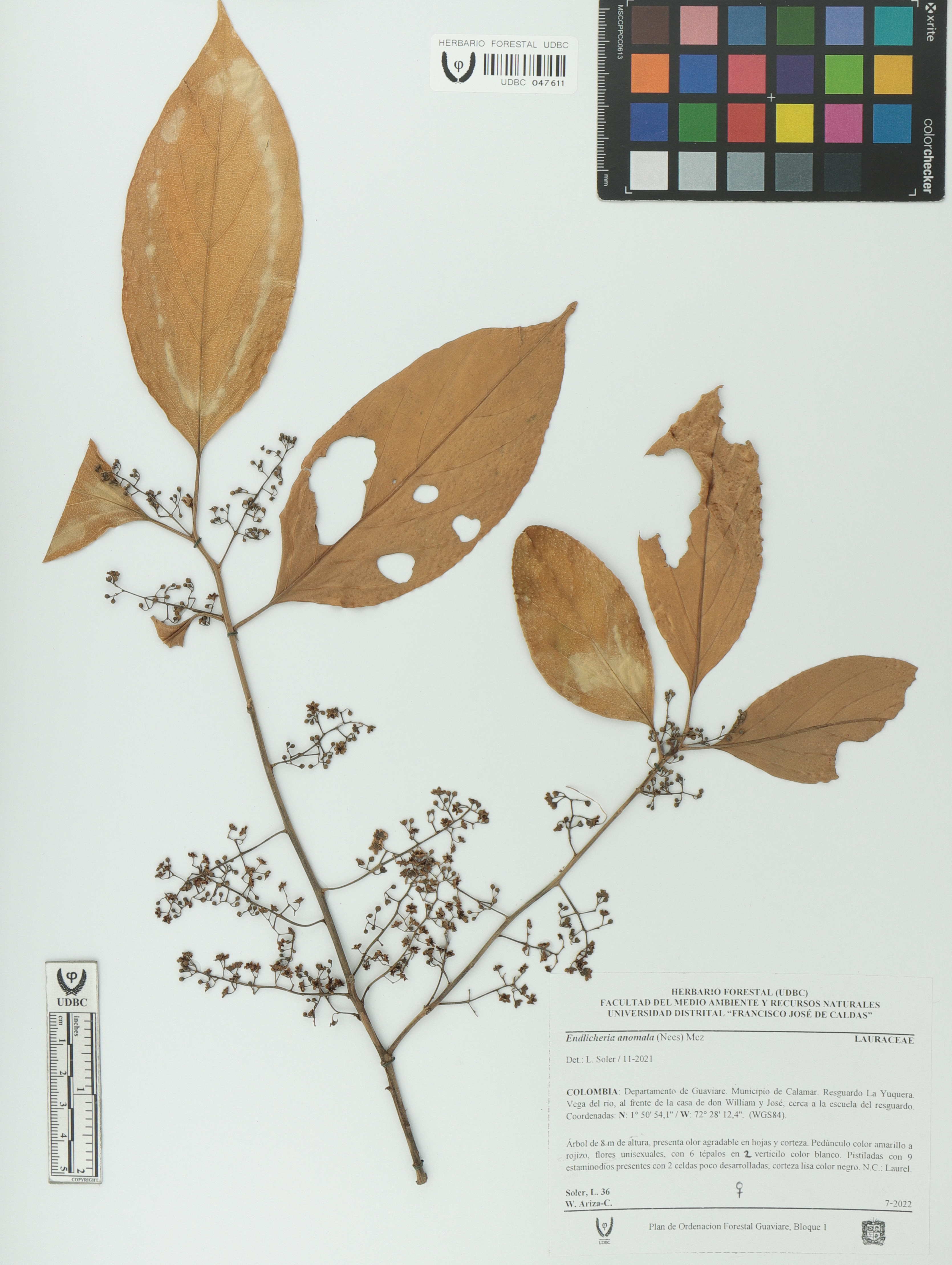 Fotografía del ejemplar Soler, L. 36, determinado como Endlicheria anomala en el año 2021
