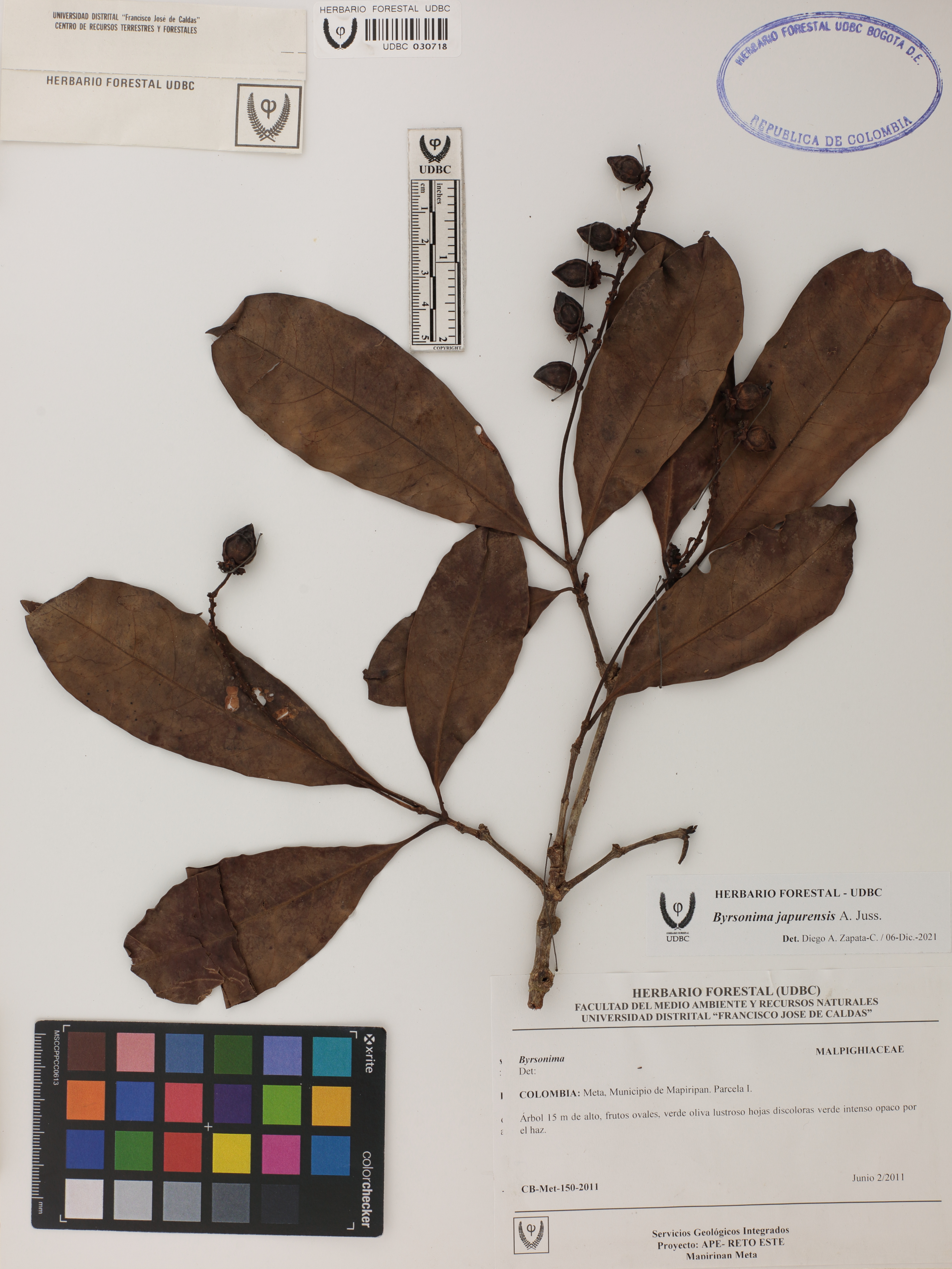 Fotografía del ejemplar SD 150, determinado como Byrsonima japurensis en el año 2021