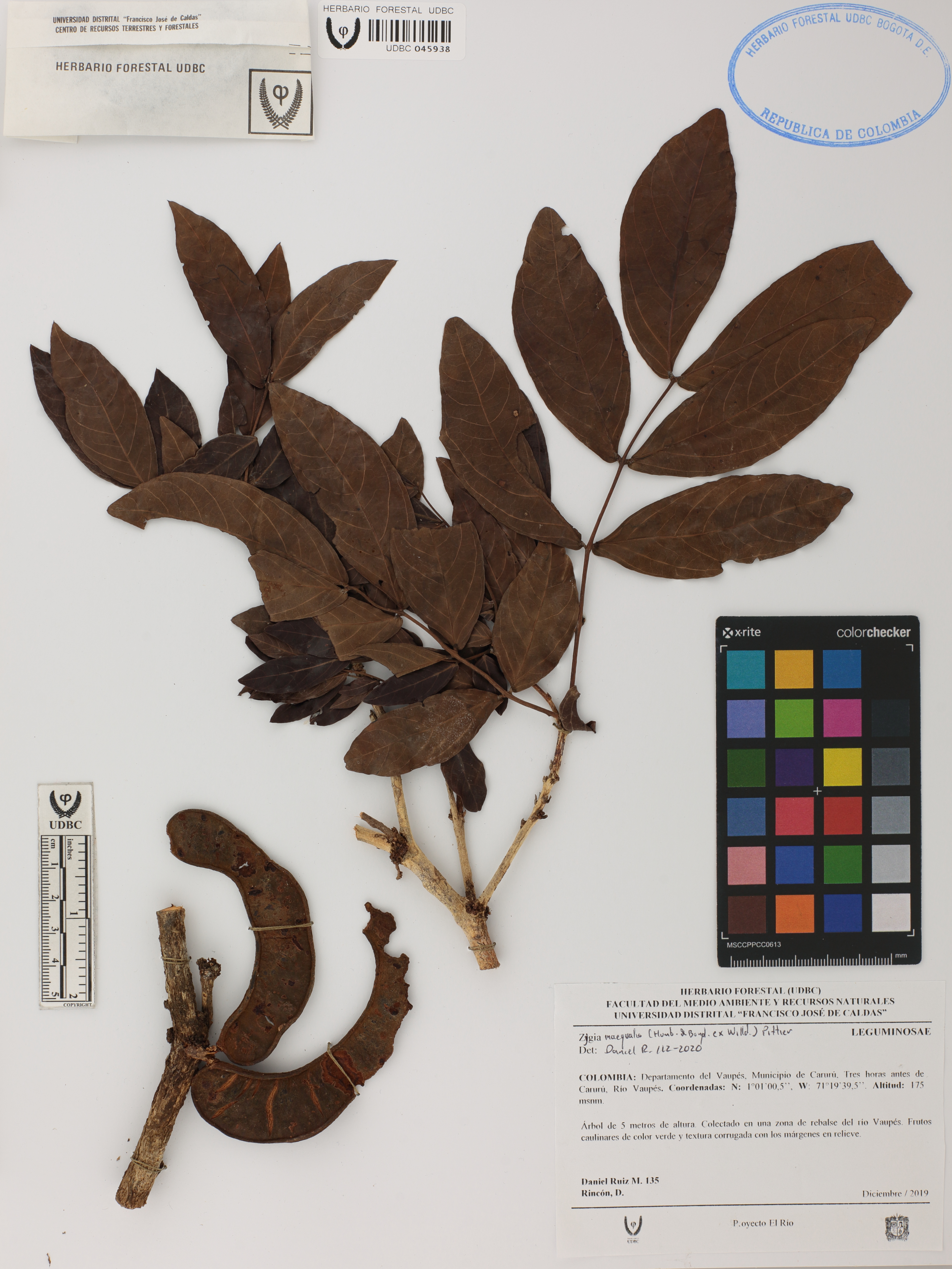 Fotografía del ejemplar Ruiz, D. 135, determinado como Zygia inaequalis en el año 2020