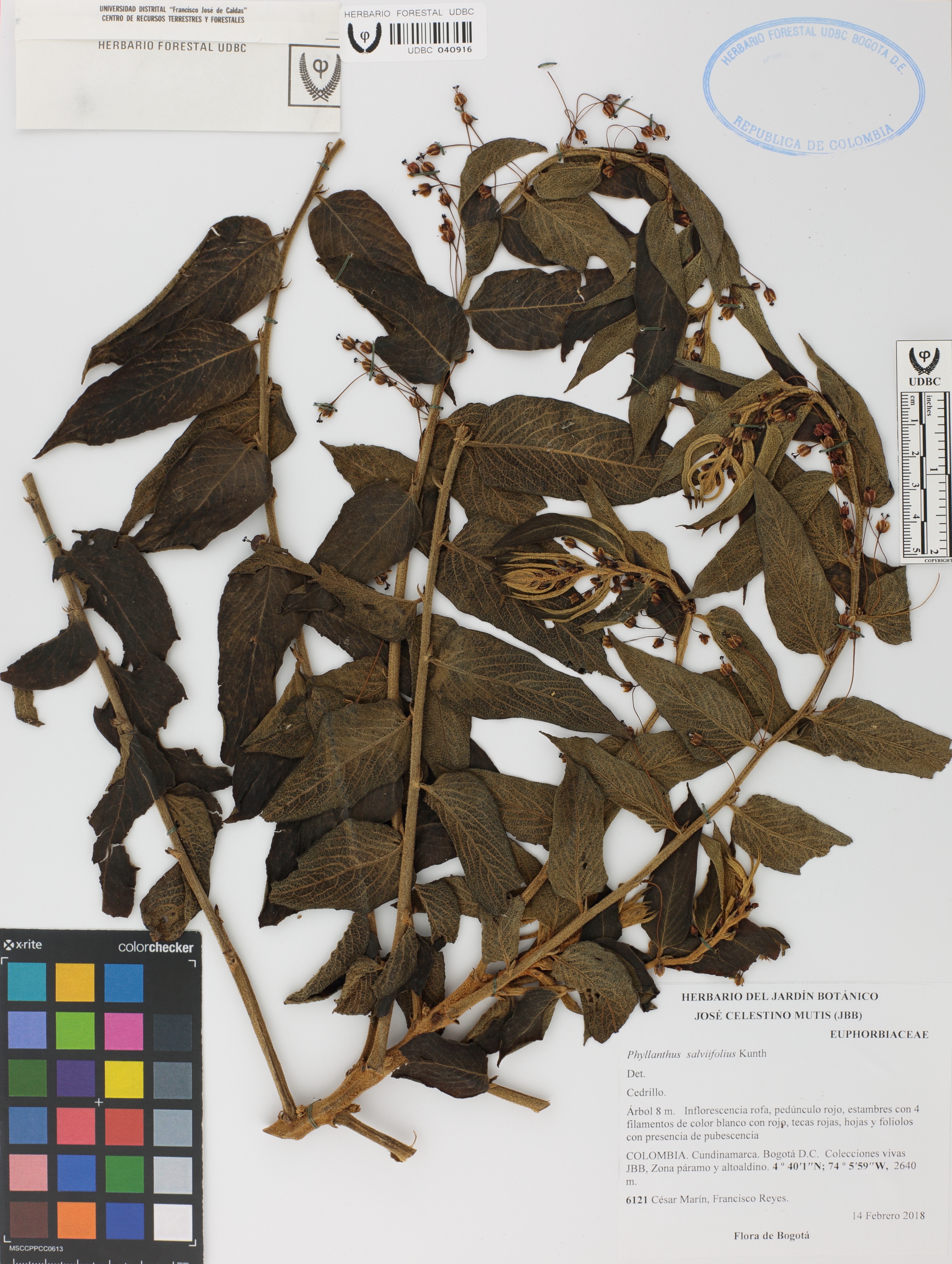 Fotografía del ejemplar Marín, C. 6121, determinado como Phyllanthus salviifolius