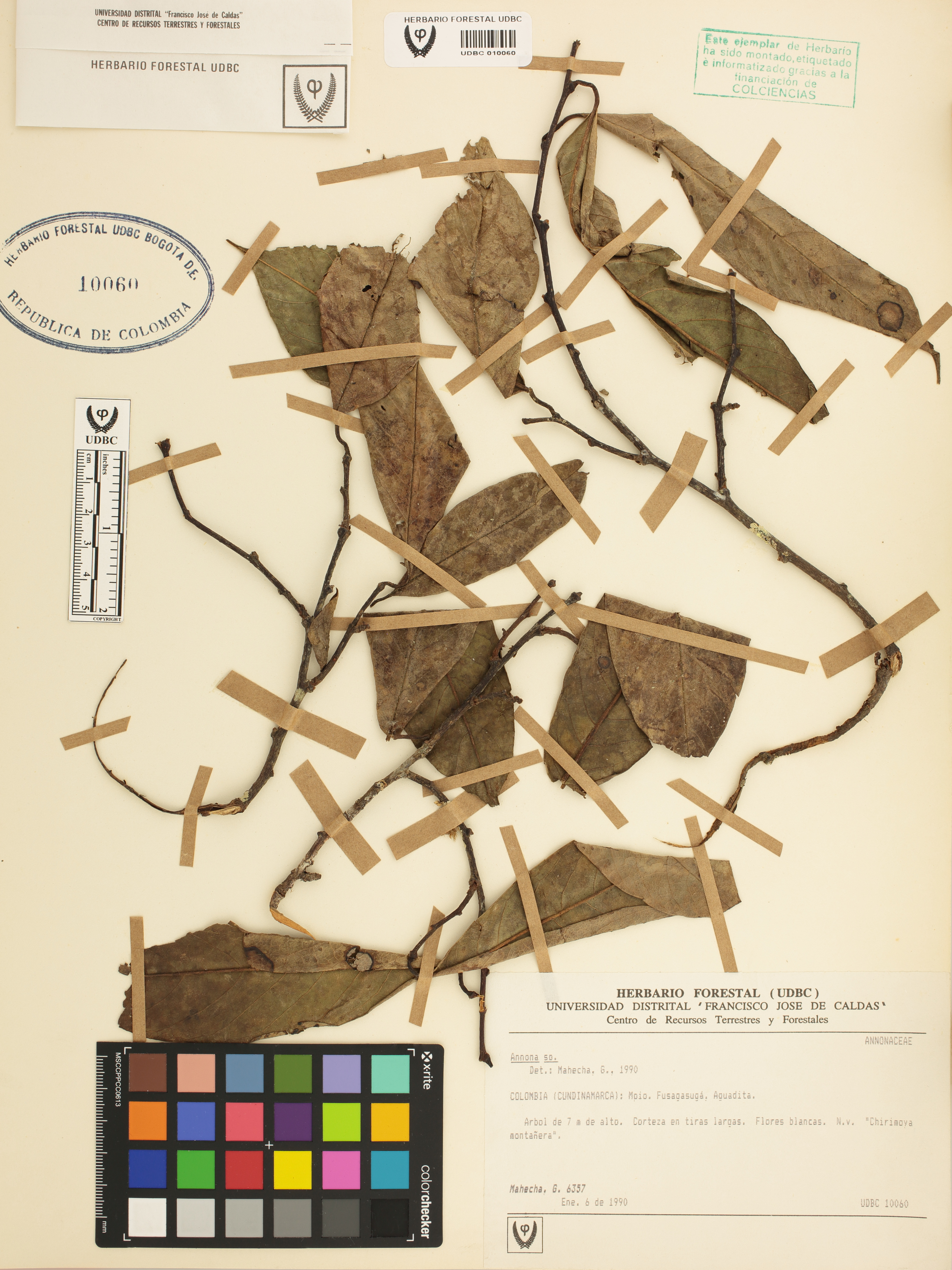 Fotografía del ejemplar Mahecha, G. 6357, determinado como Annona quinduensis en el año 2022