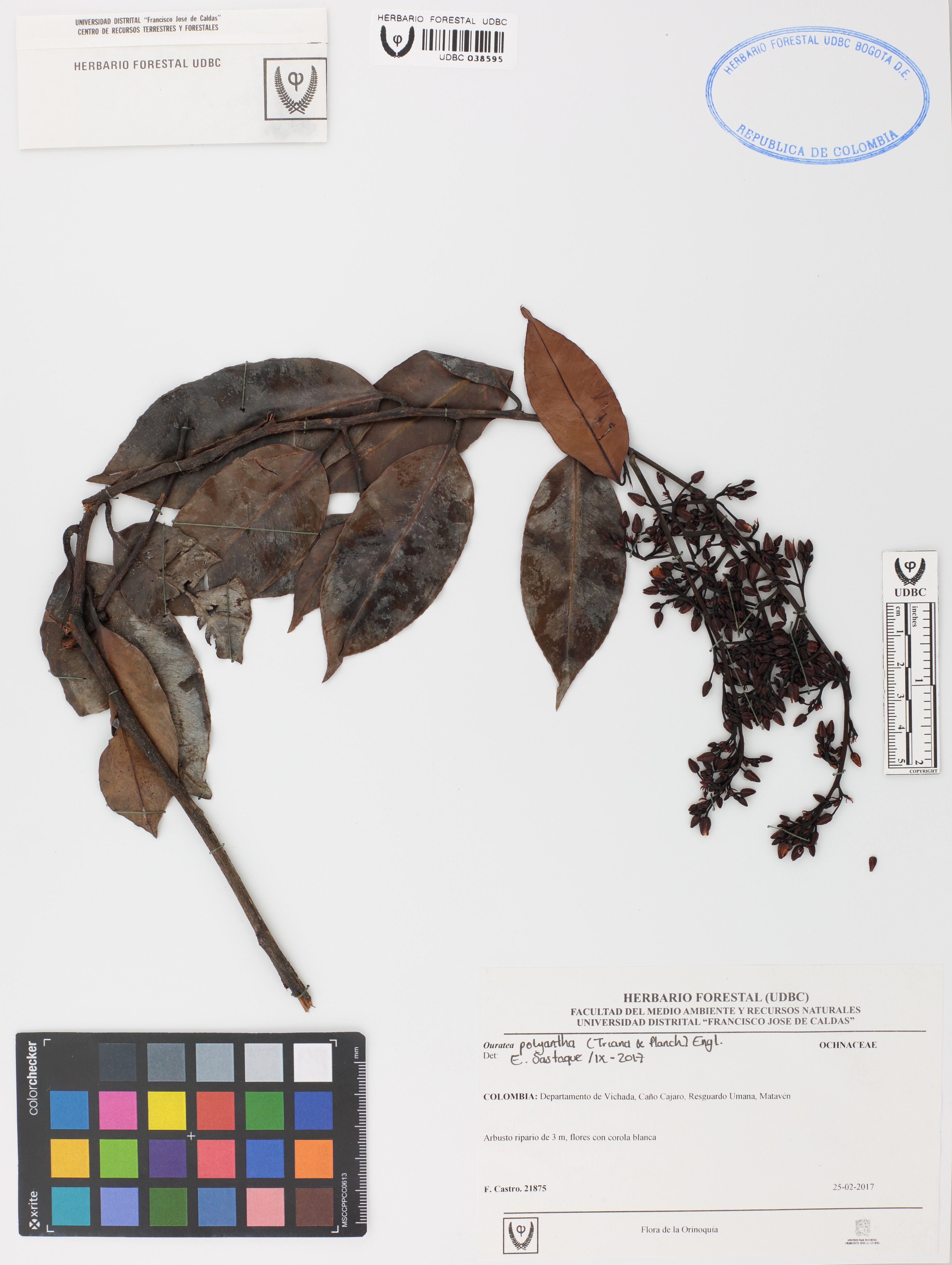 | dc.description | Fotografía del ejemplar Castro, F. 21875, determinado como Ouratea polyantha en el año 2017 | |
