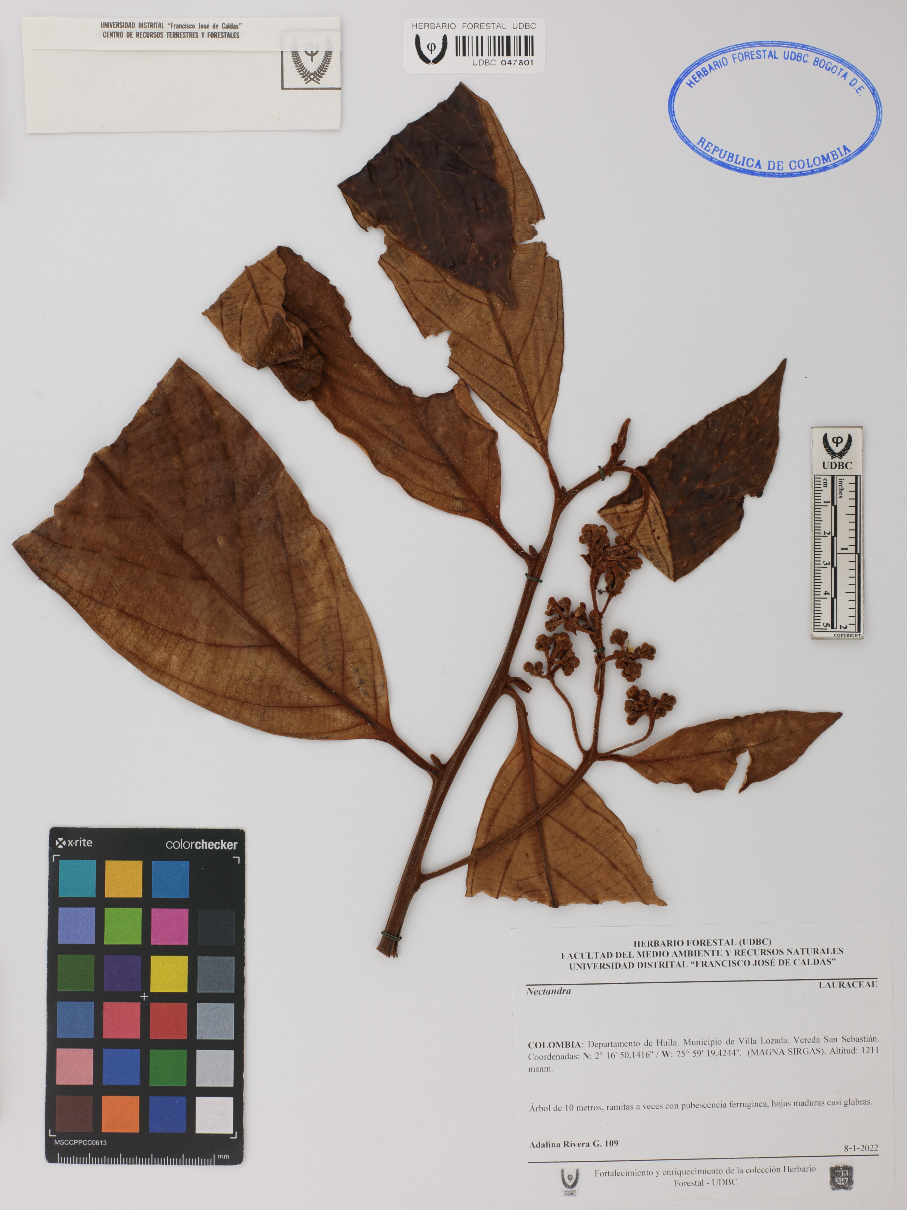 Fotografía del ejemplar Rivera-G., A. 109, determinado como Nectandra sp.