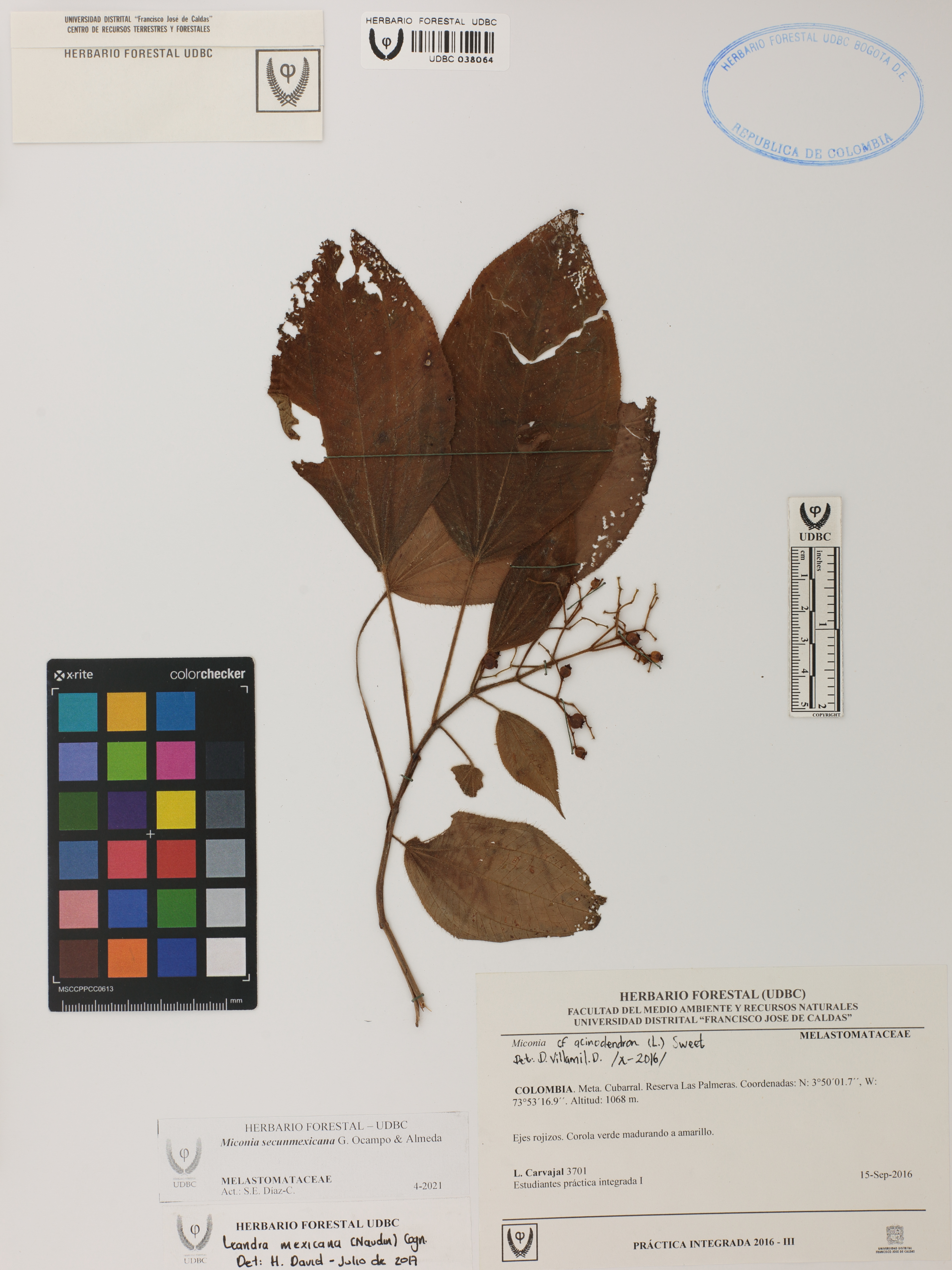 Fotografía del ejemplar Carvajal, L. 3701, determinado como Miconia secunmexicana en el año 2017
