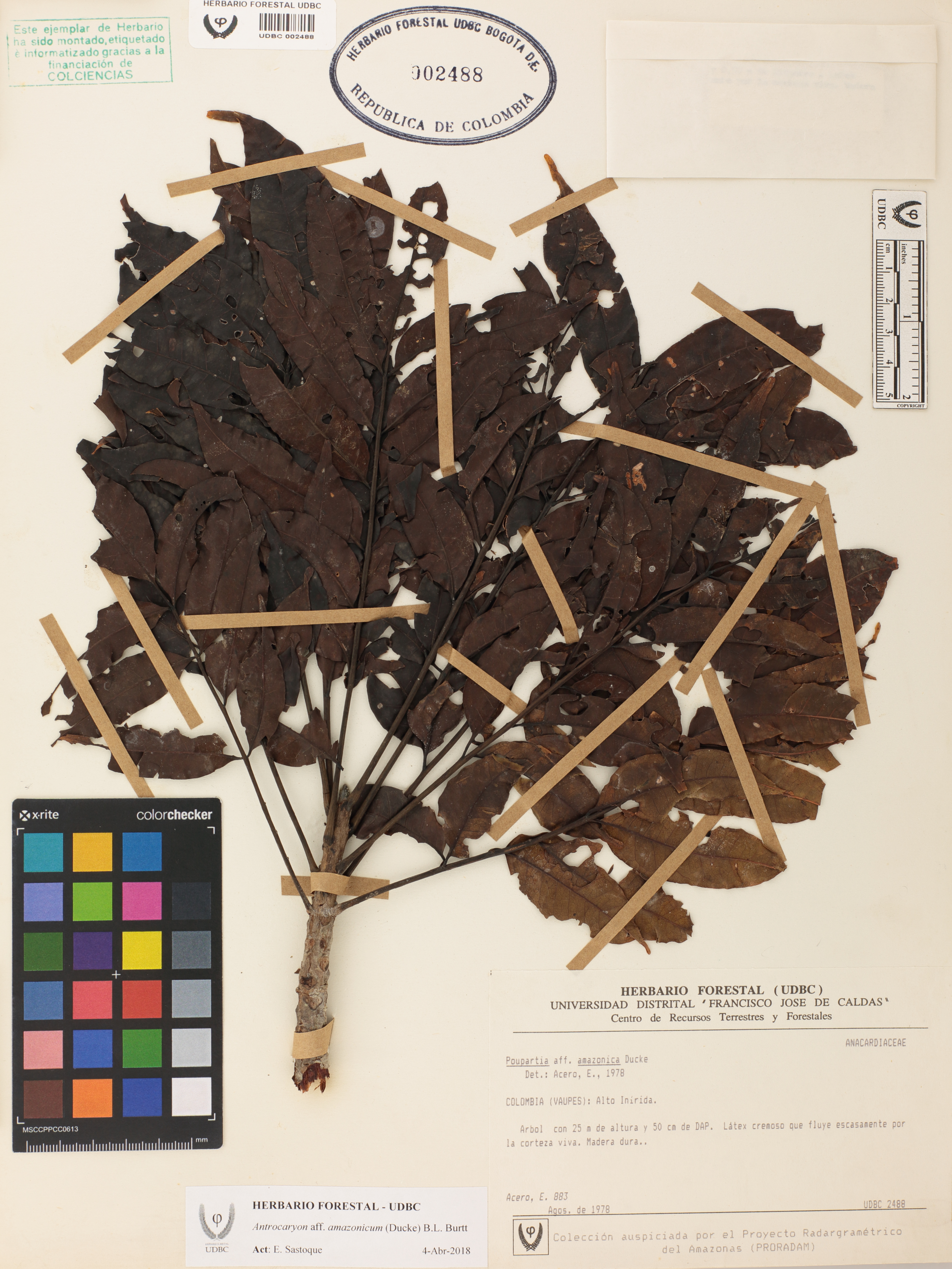 Fotografía del ejemplar Acero, E. 883, determinado como Antrocaryon amazonicum en el año 1978
