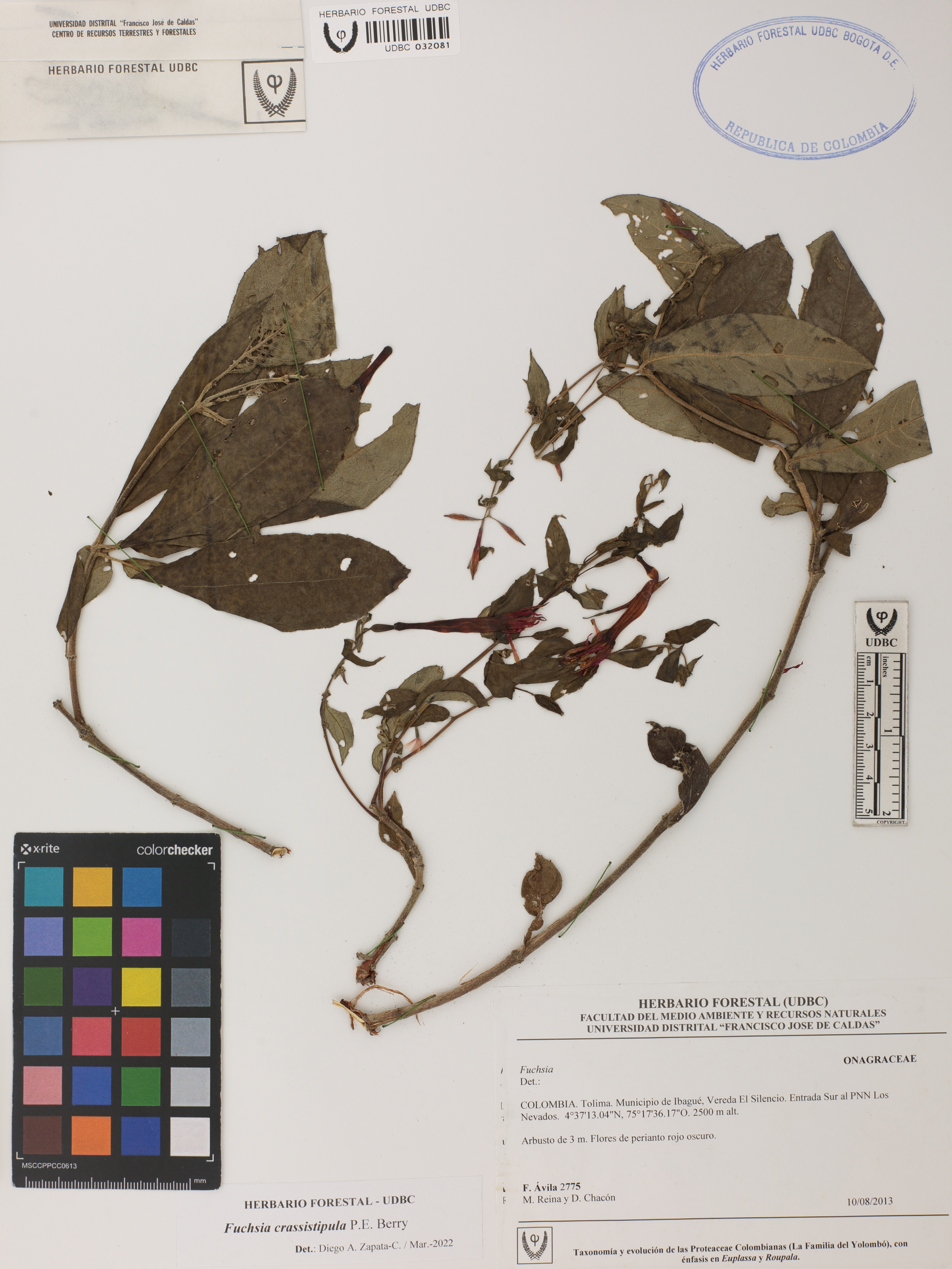 Fotografía del ejemplar Ávila, F. 2775, determinado como Fuchsia crassistipula en el año 2022
