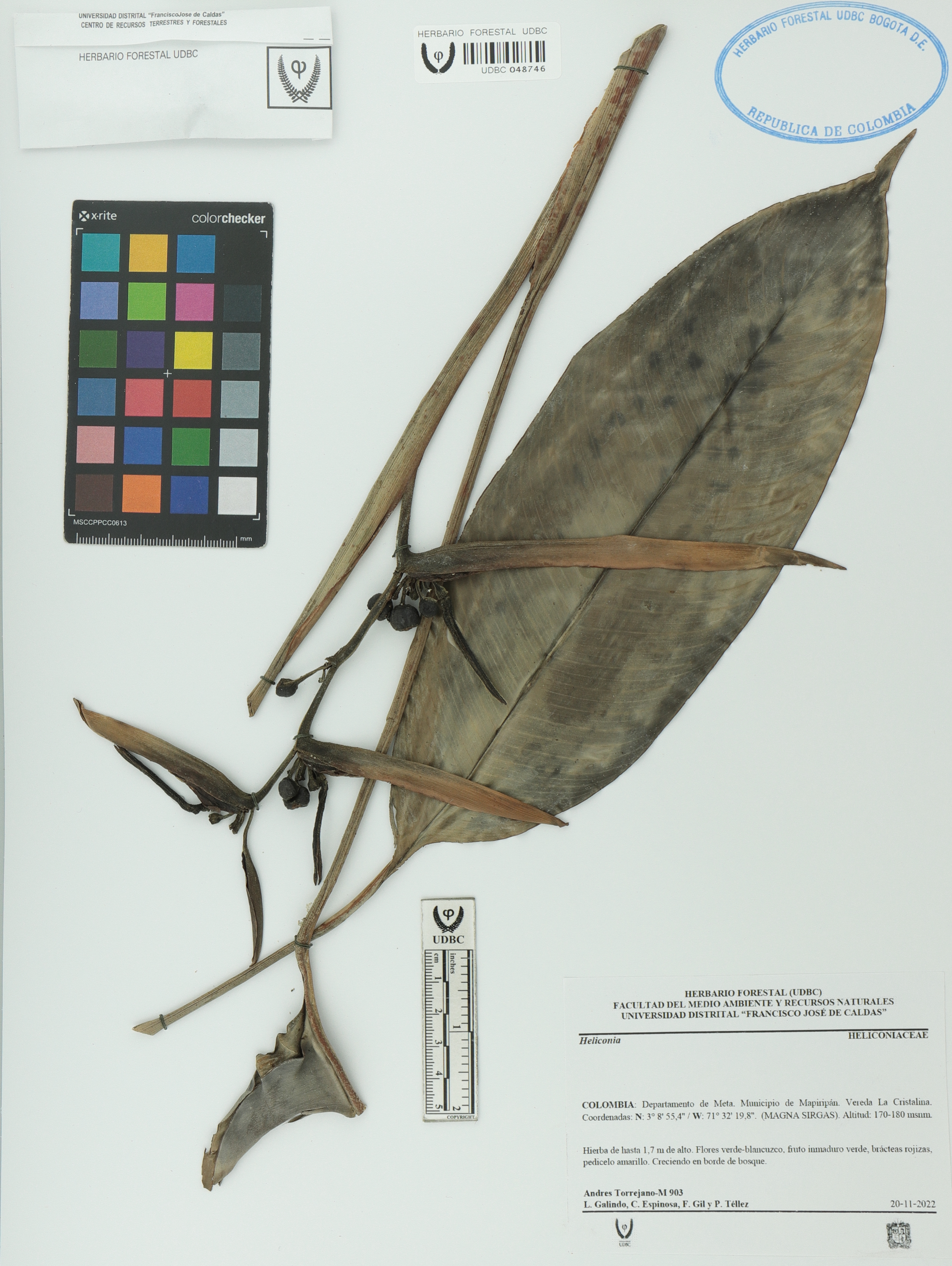 Fotografía del ejemplar Torrejano-M., Andrés 903, determinado como Heliconia sp. en el año 2022