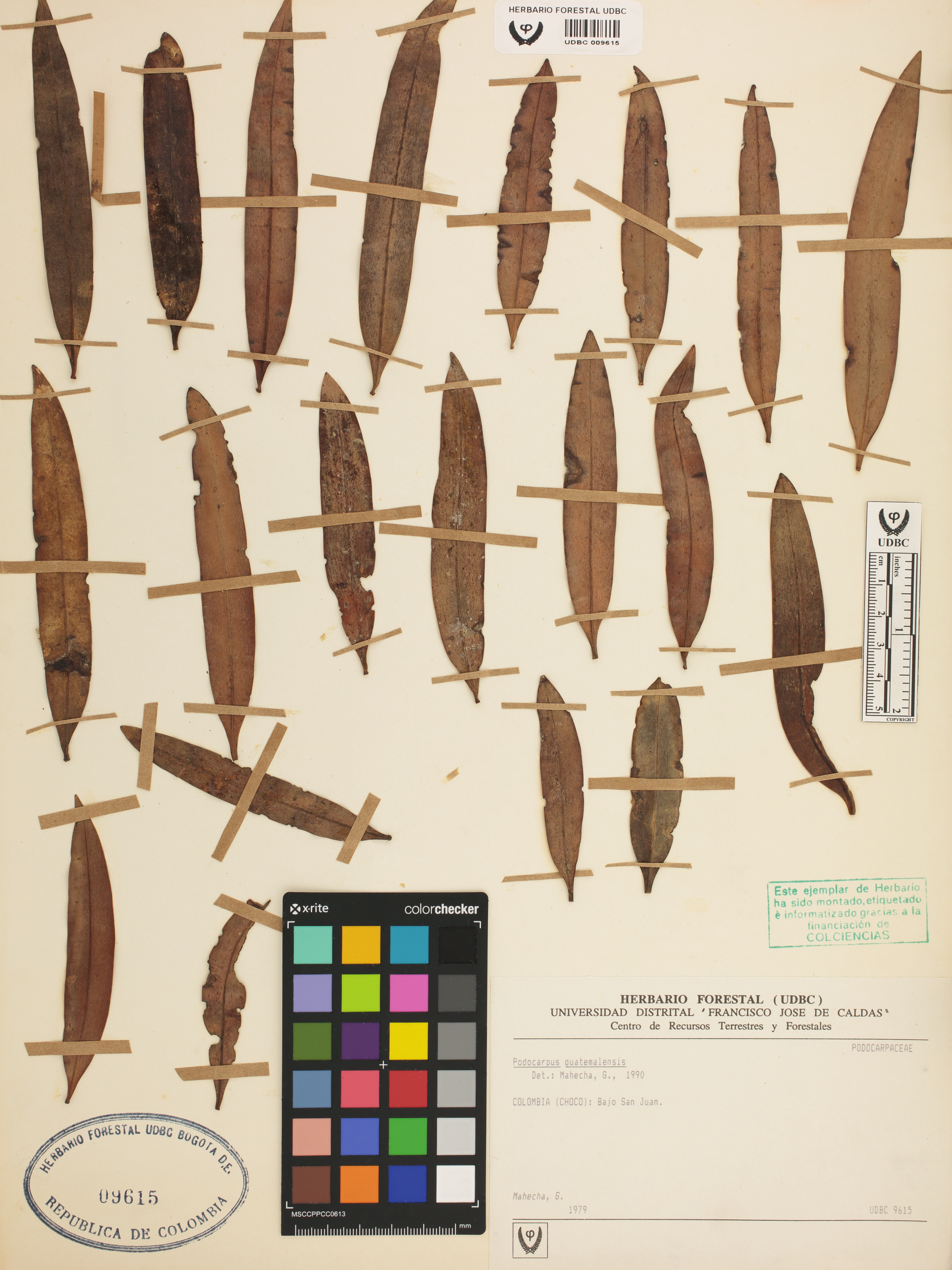 Fotografía del ejemplar Mahecha, G., determinado como Podocarpus guatemalensis en el año 1990