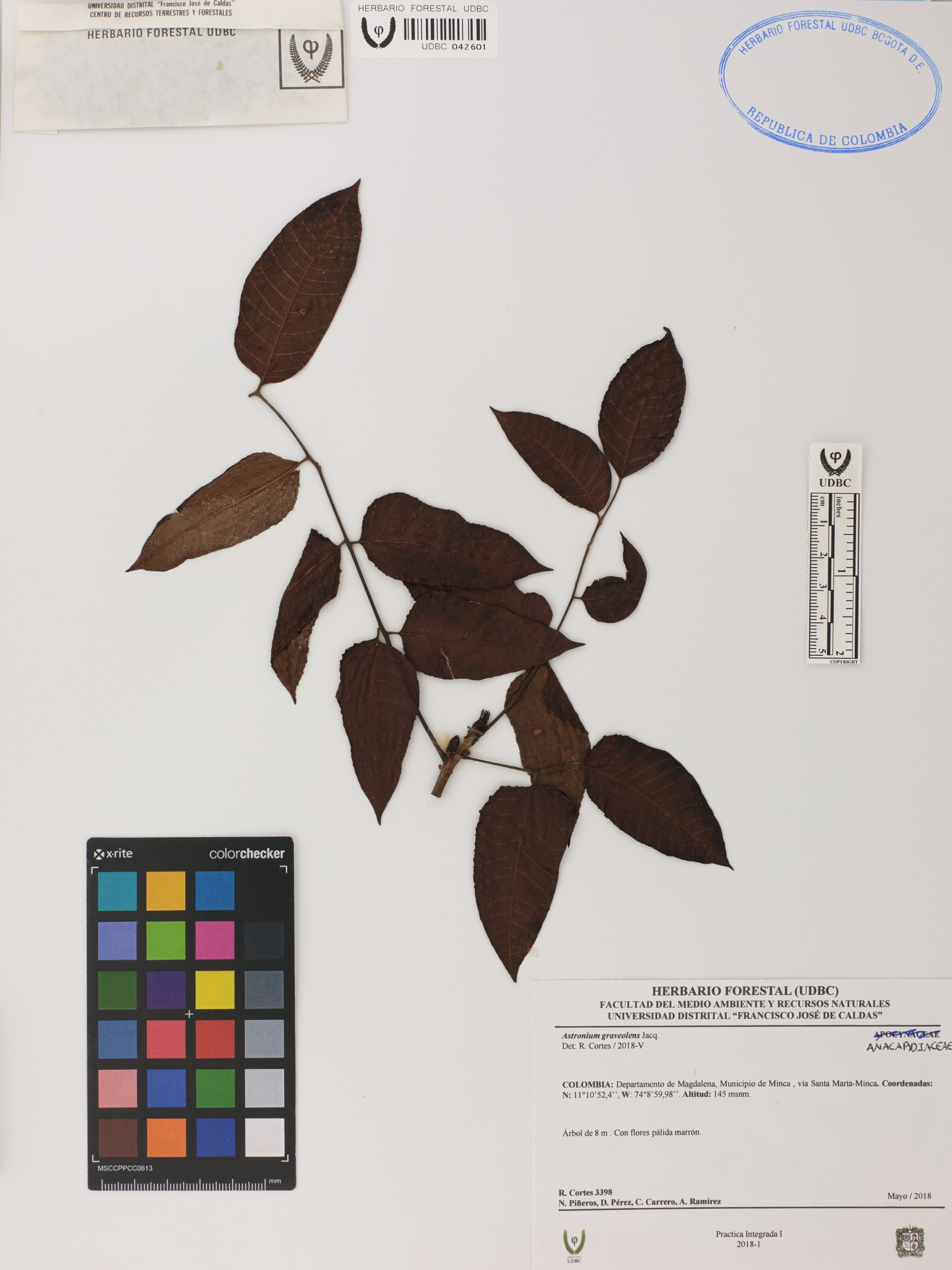 Fotografía del ejemplar Cortés, R. 3398, determinado como Astronium graveolens en el año 2018