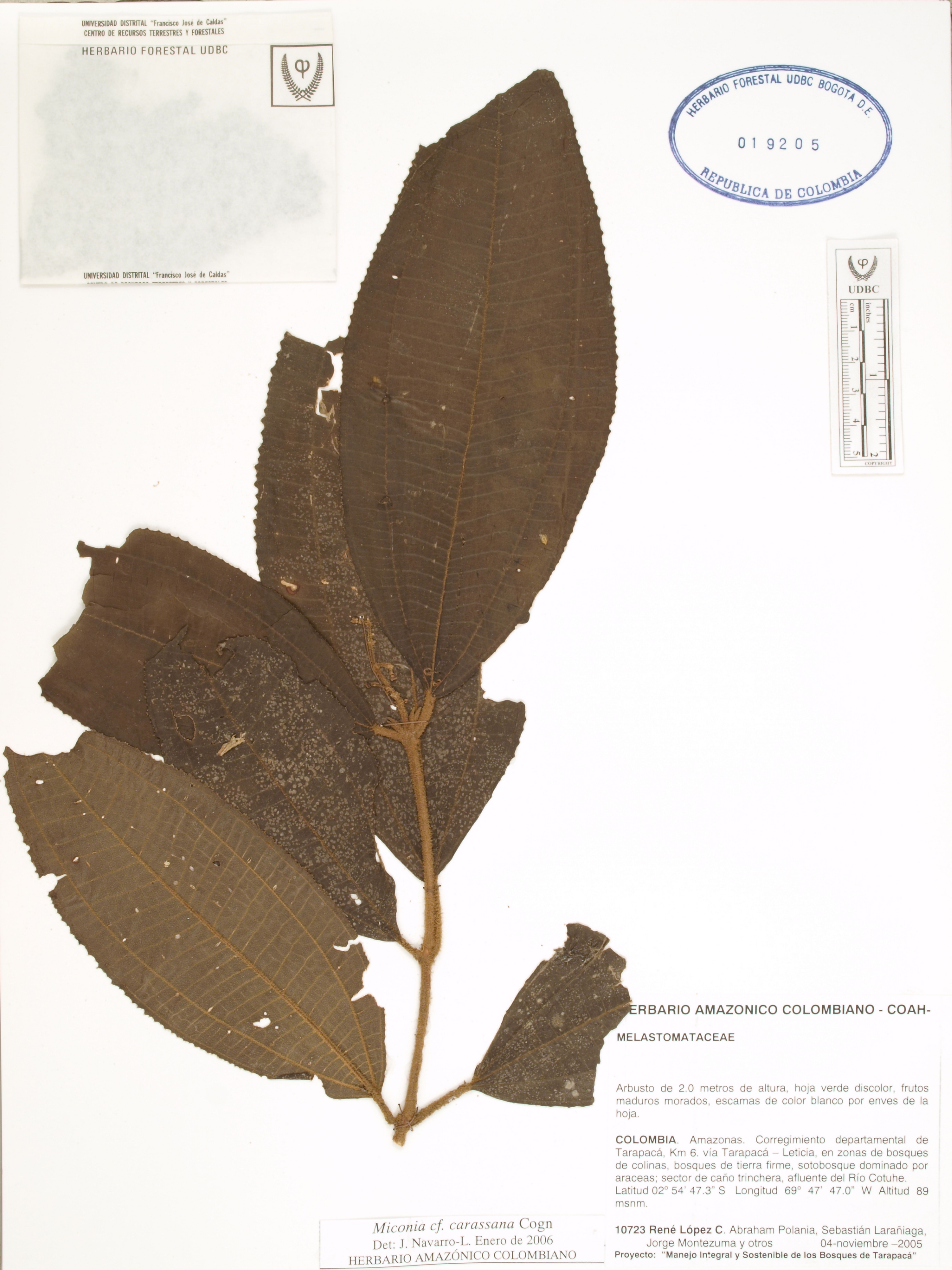 | dc.description | Fotografía del ejemplar López, R. 10723, determinado como Miconia carassana en el año 2006 | |