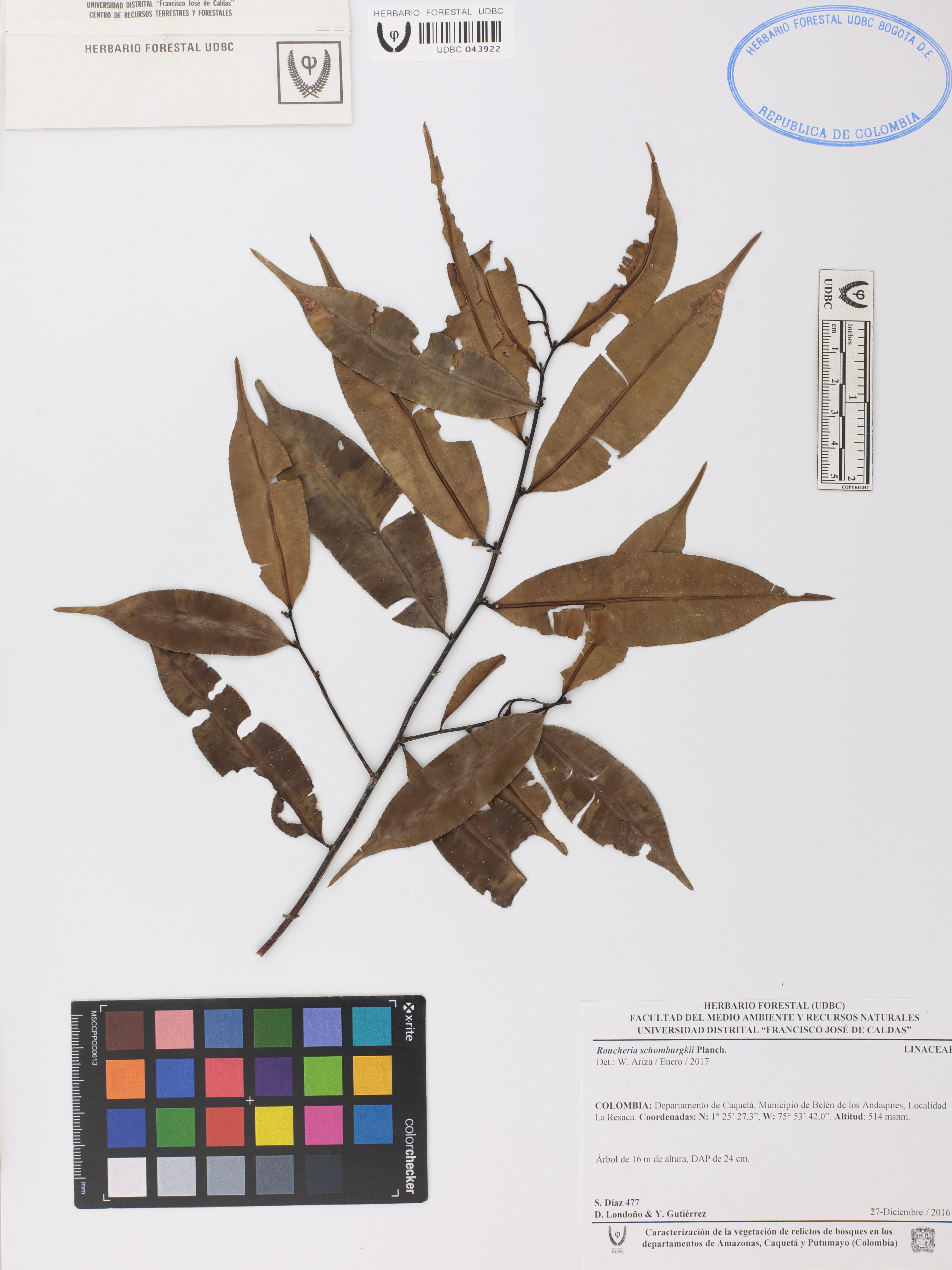 Fotografía del ejemplar Díaz, S. 477, determinado como Roucheria schomburgkii en el año 2017