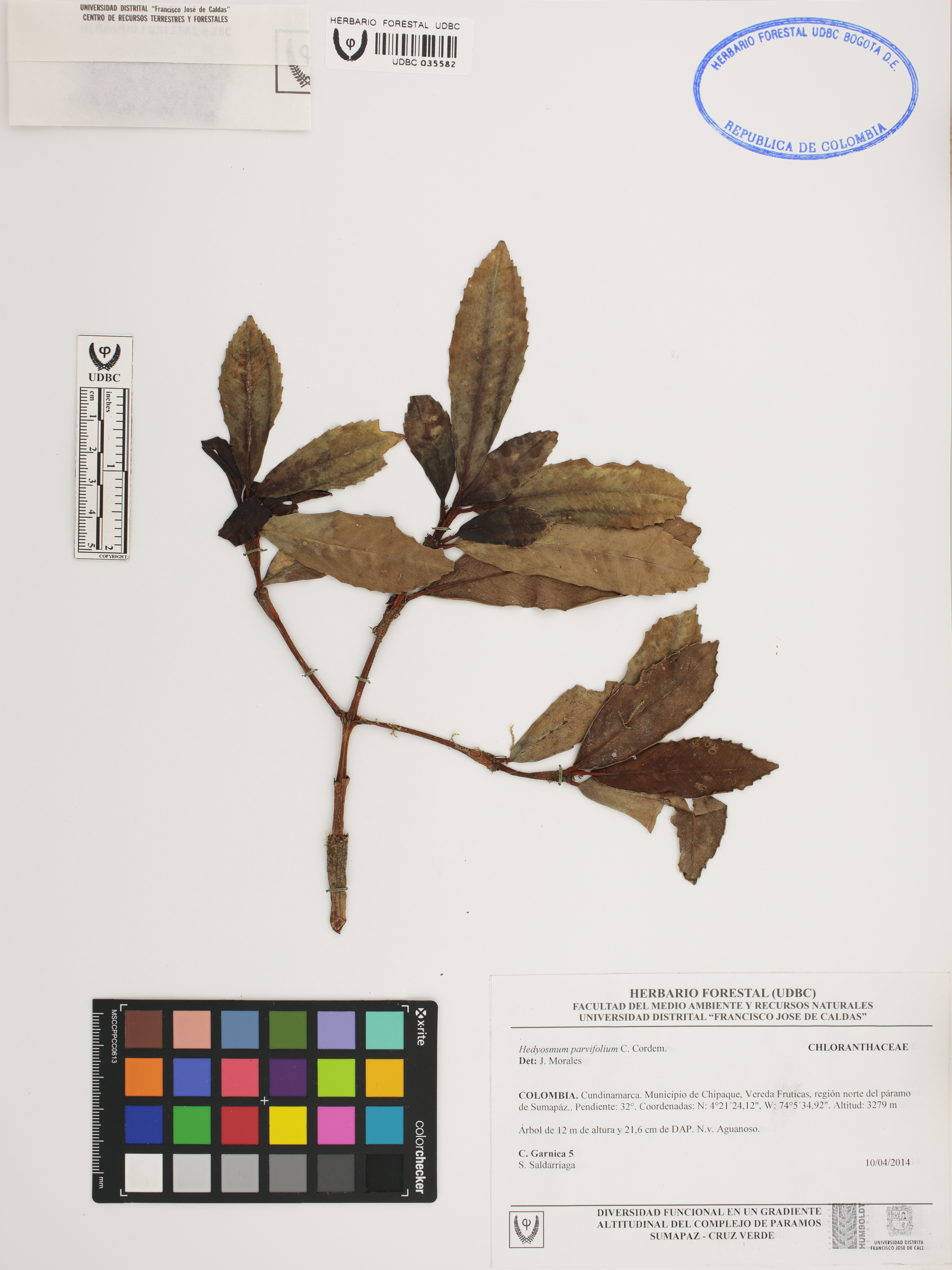 | dc.description | Fotografía del ejemplar Garnica, C. 5, determinado como Hedyosmum parvifolium | |