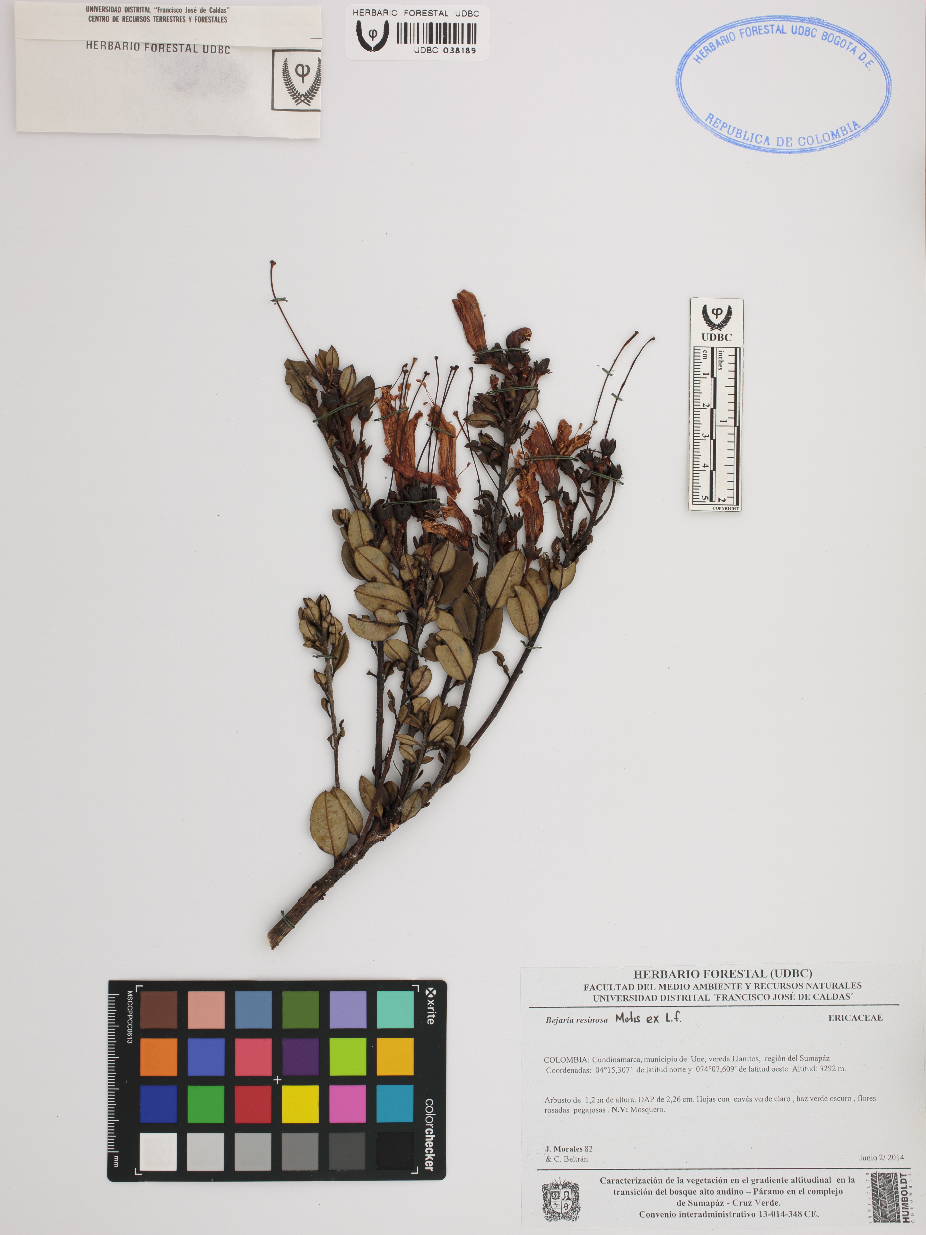 | dc.description | Fotografía del ejemplar Morales, J. 82, determinado como Bejaria resinosa | |