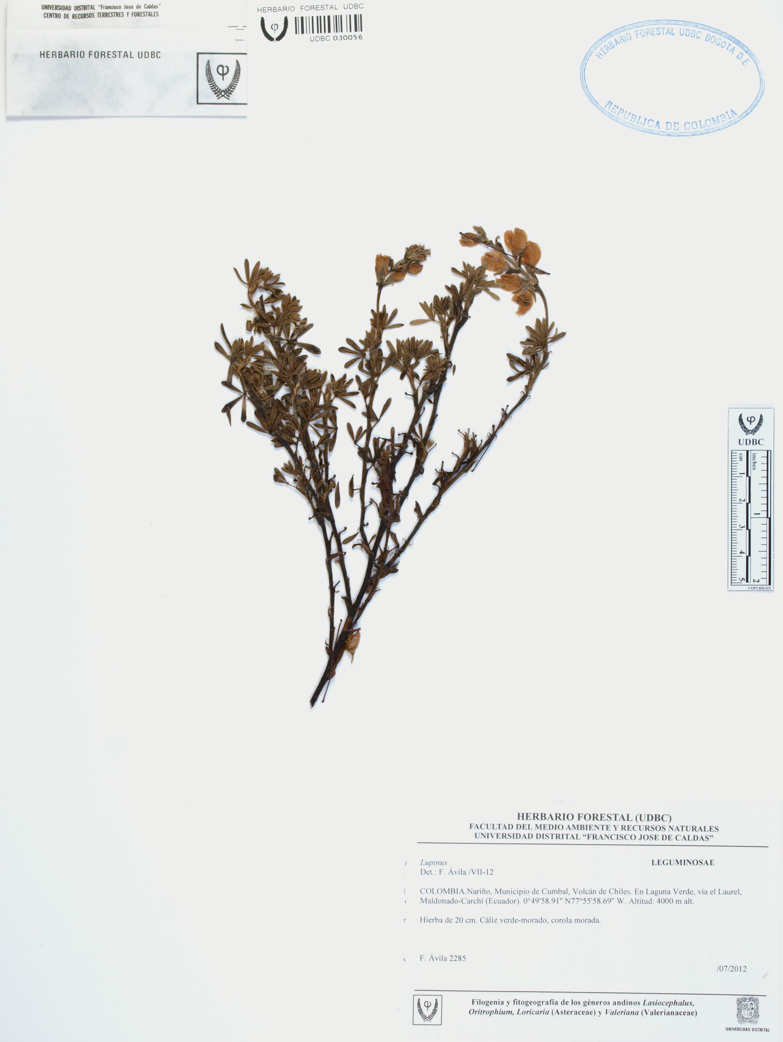 Fotografía del ejemplar Ávila, F. 2285, determinado como Lupinus sp.