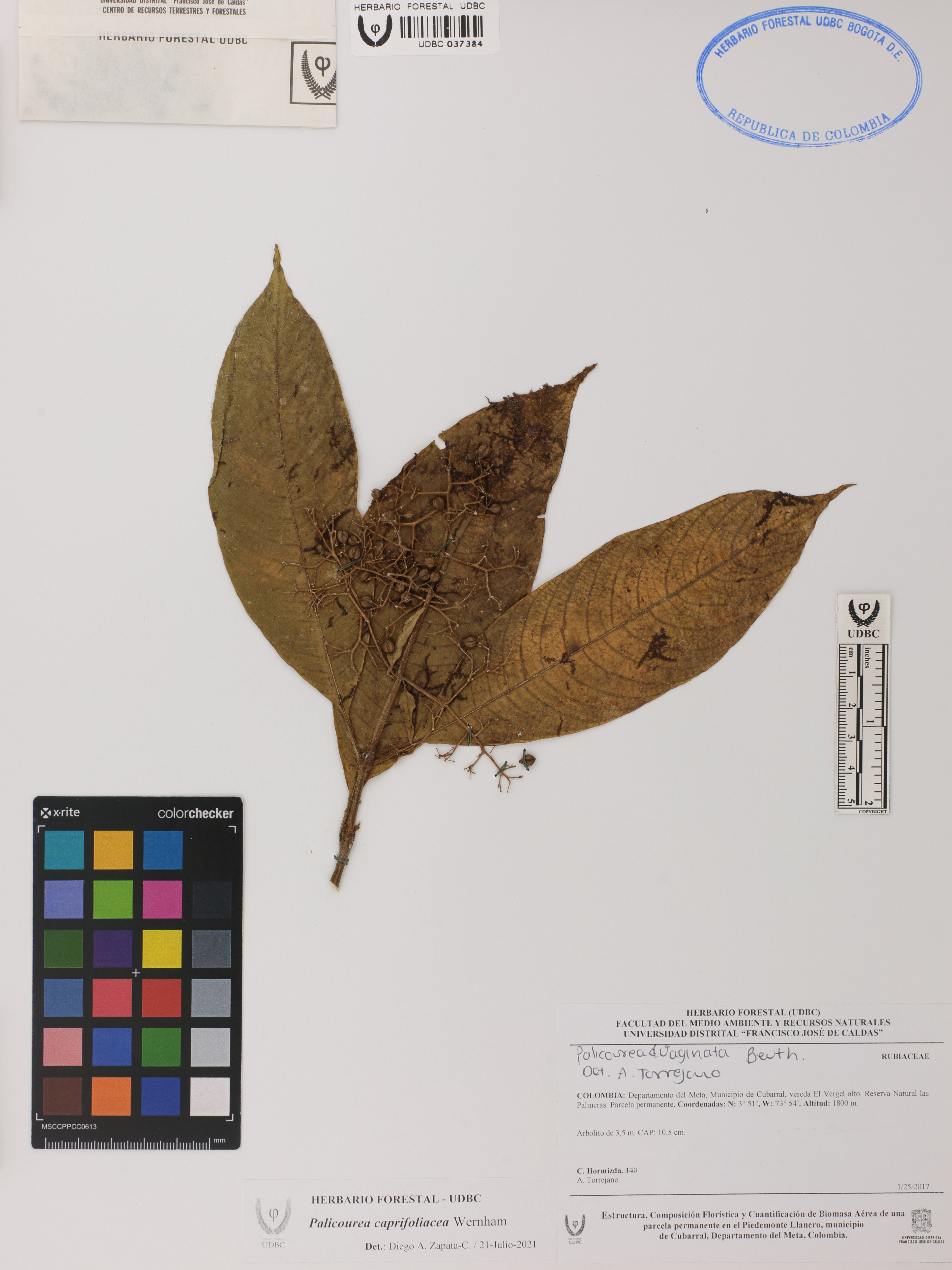 Fotografía del ejemplar Hormizda, C. 140, determinado como Palicourea caprifoliacea en el año 2021