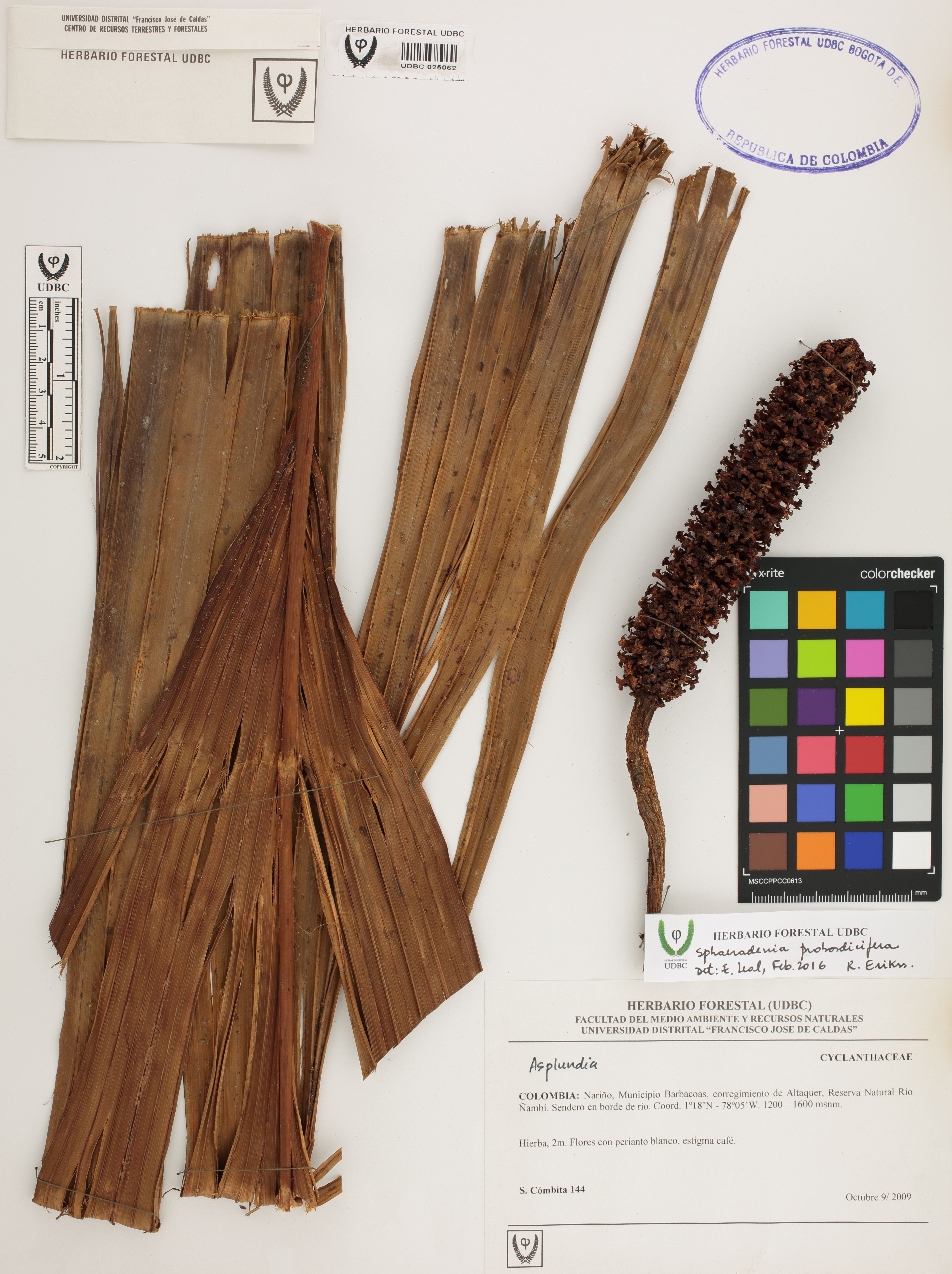 Fotografía del ejemplar Cómbita, S. 144, determinado como Sphaeradenia proboscidifera en el año 2016