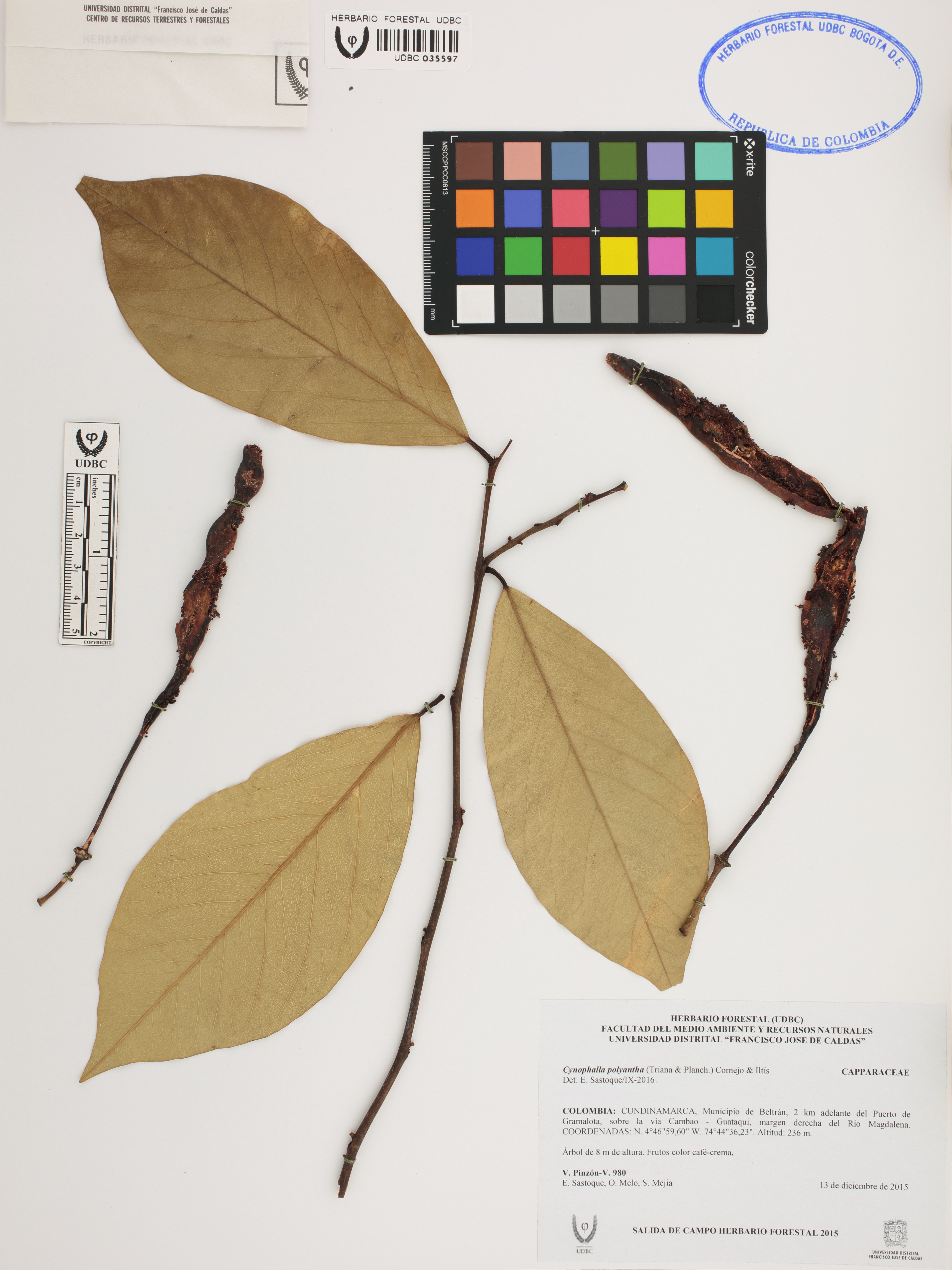 Fotografía del ejemplar Pinzón-V., V. 980, determinado como Cynophalla polyantha en el año 2016