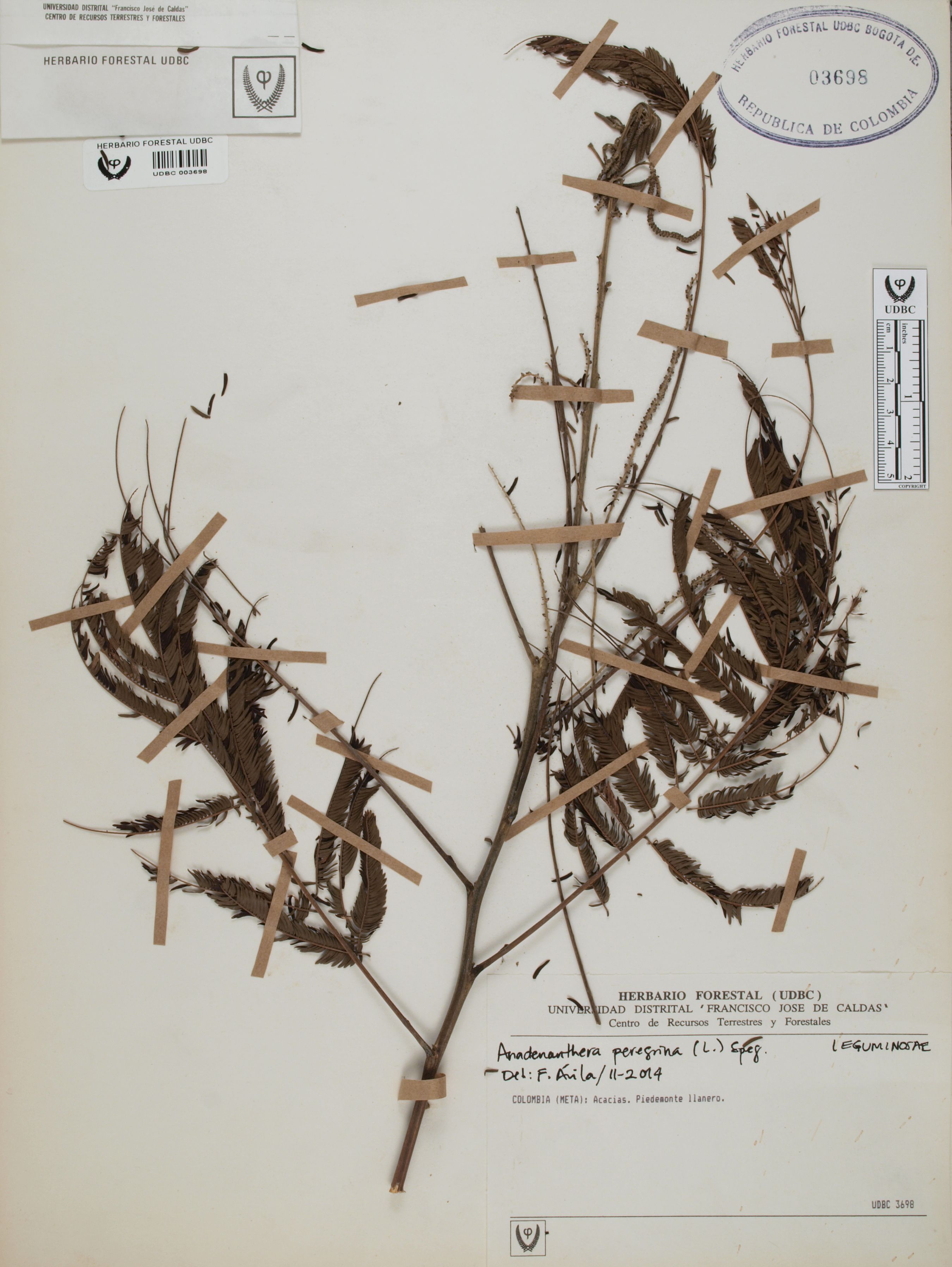 Fotografía del ejemplar SD, determinado como Anadenanthera peregrina en el año 2014