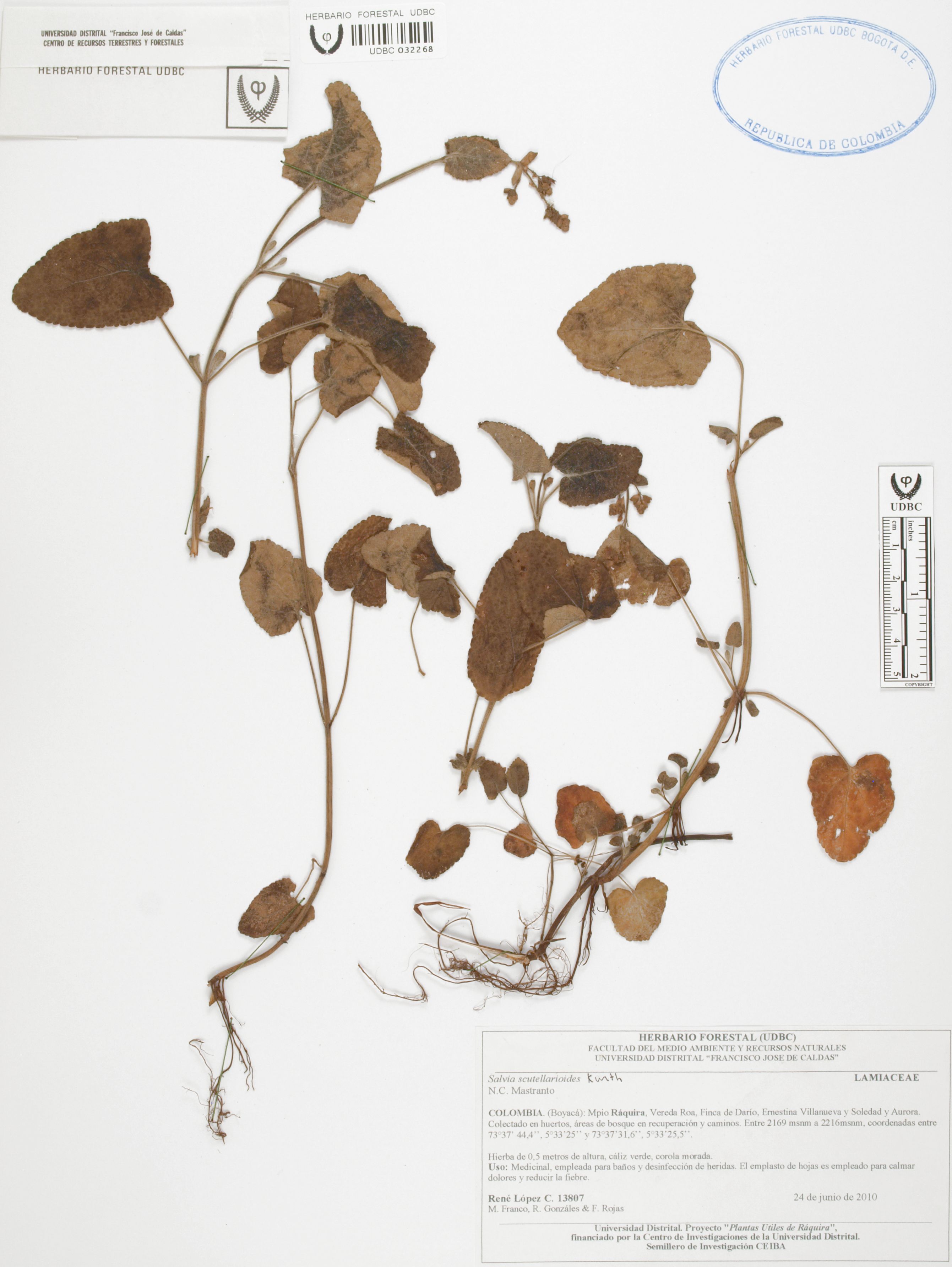 | dc.description | Fotografía del ejemplar López, R. 13807, determinado como Salvia scutellarioides | |