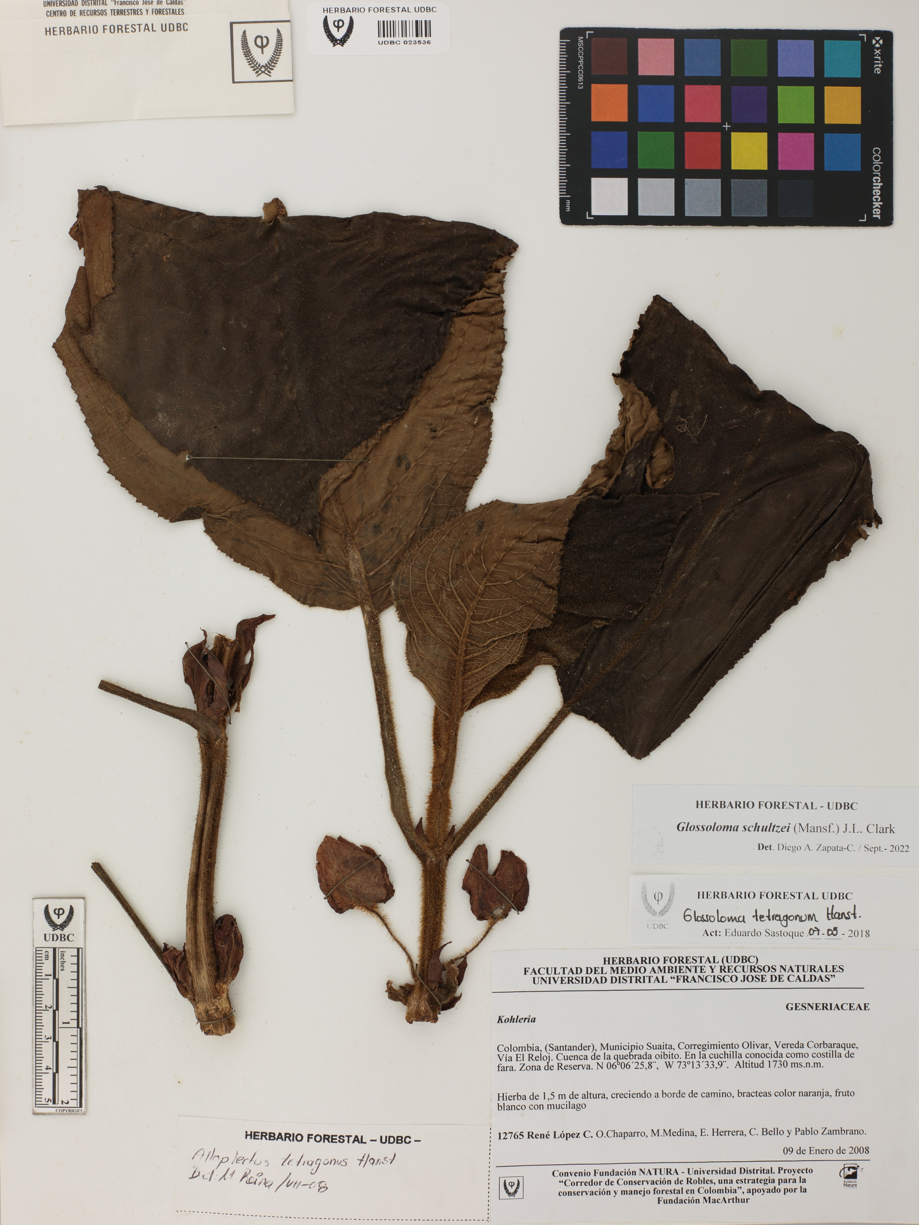 Fotografía del ejemplar López, R. 12765, determinado como Glossoloma schultzei en el año 2022