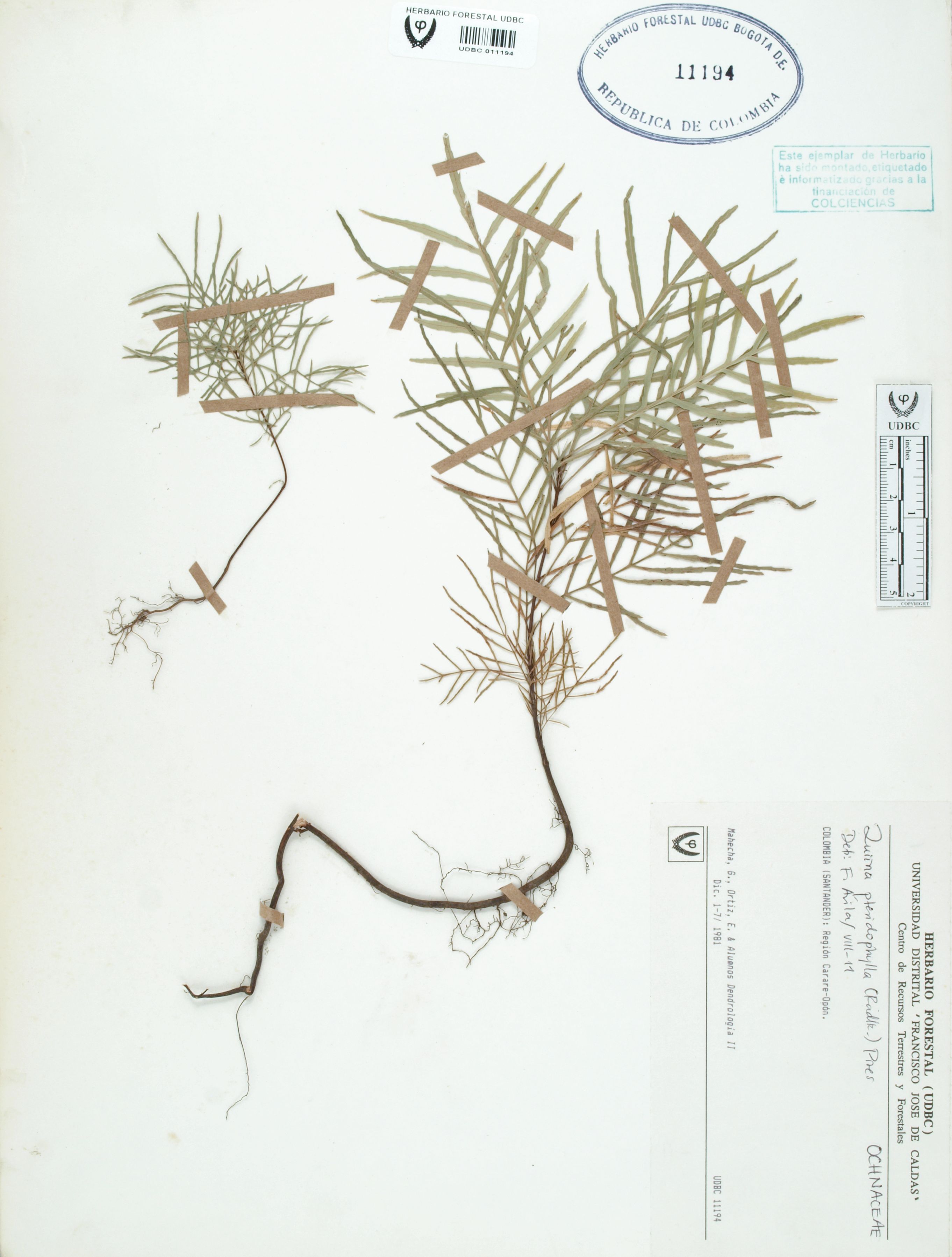 | dc.description | Fotografía del ejemplar Mahecha, G., determinado como Quiina pteridophylla en el año 2011 | |