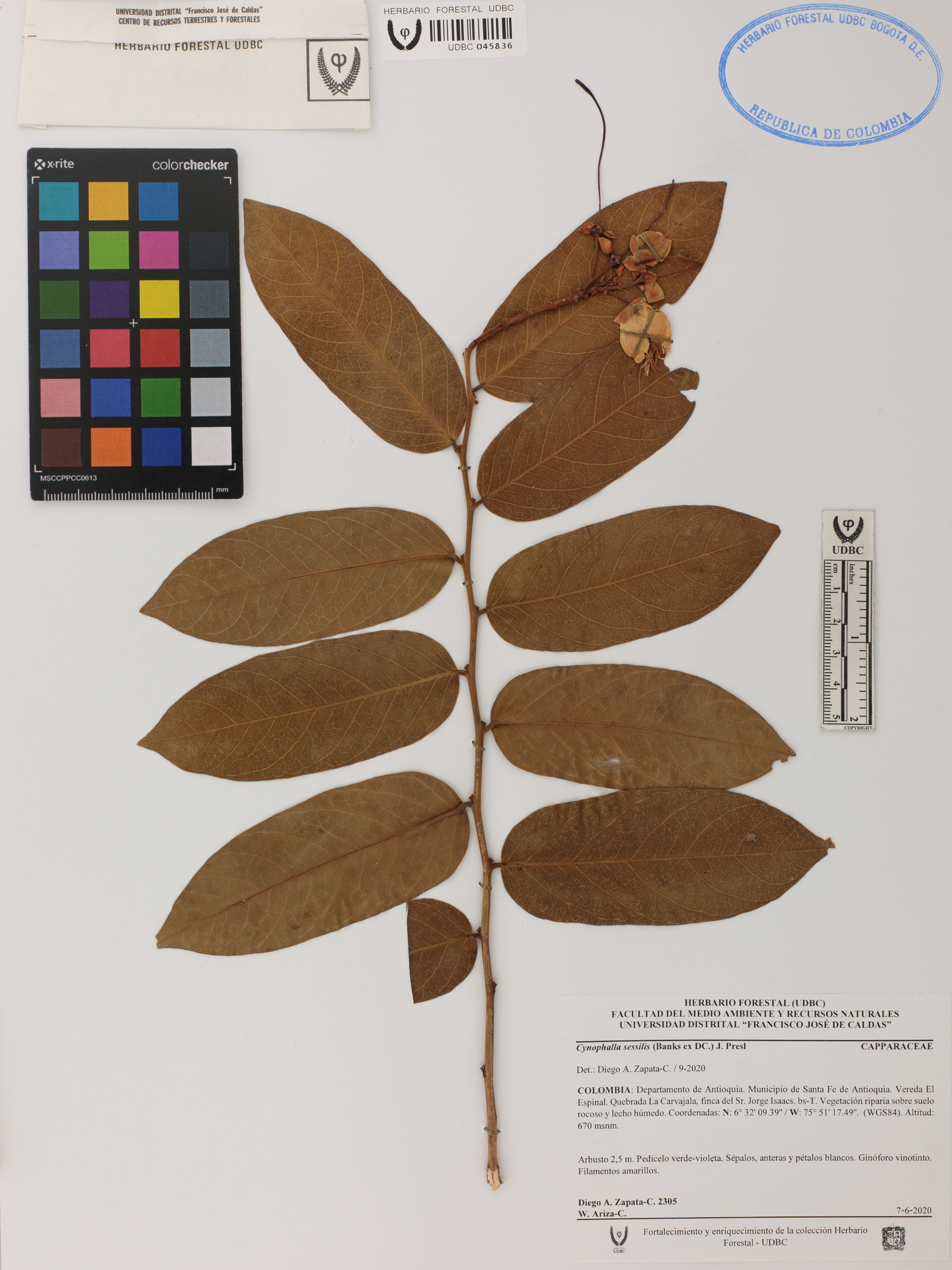 Fotografía del ejemplar Zapata-C., D. 2305, determinado como Cynophalla sessilis en el año 2020