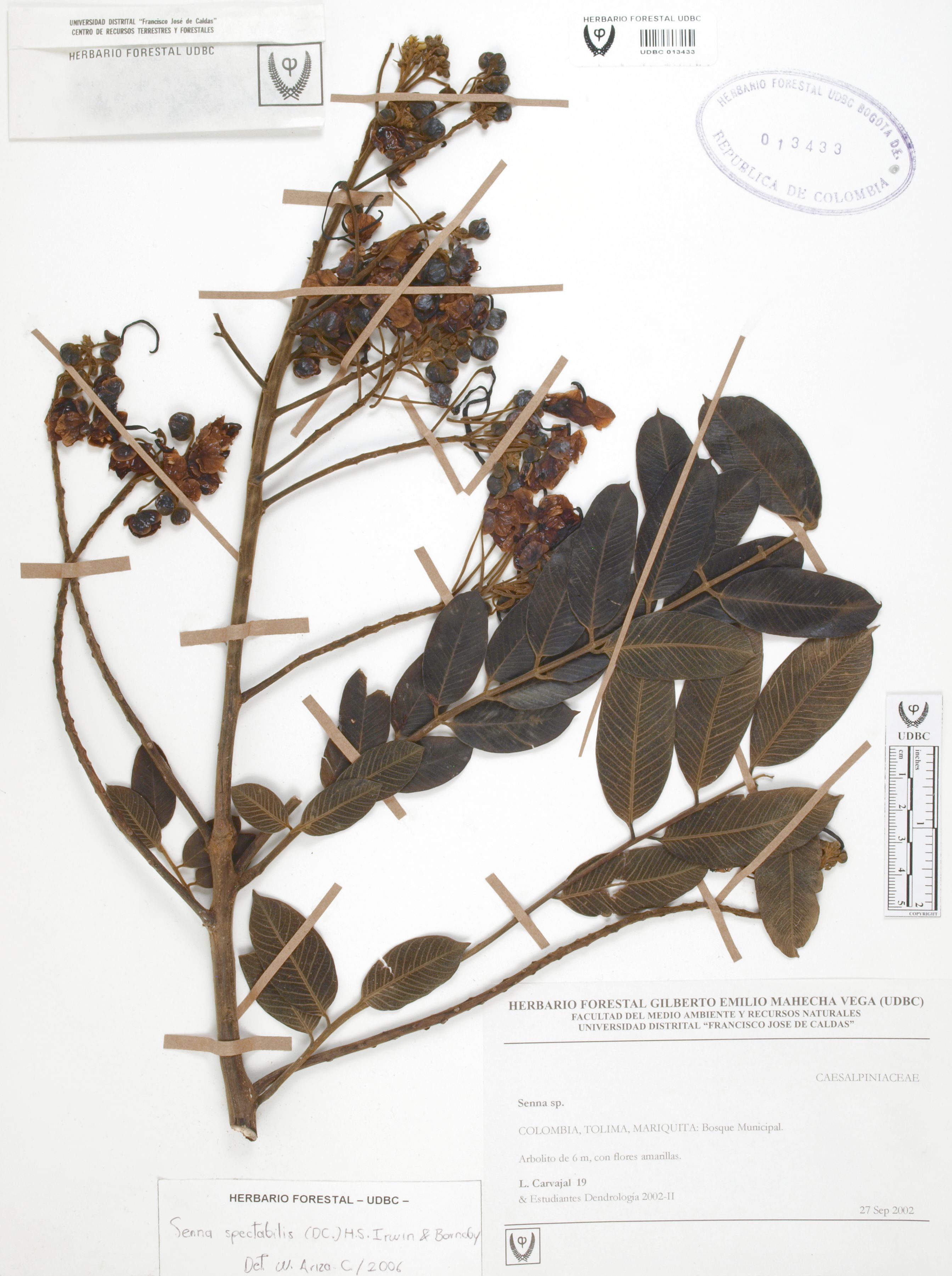 | dc.description | Fotografía del ejemplar Carvajal, L. 19, determinado como Senna spectabilis en el año 2006 | |