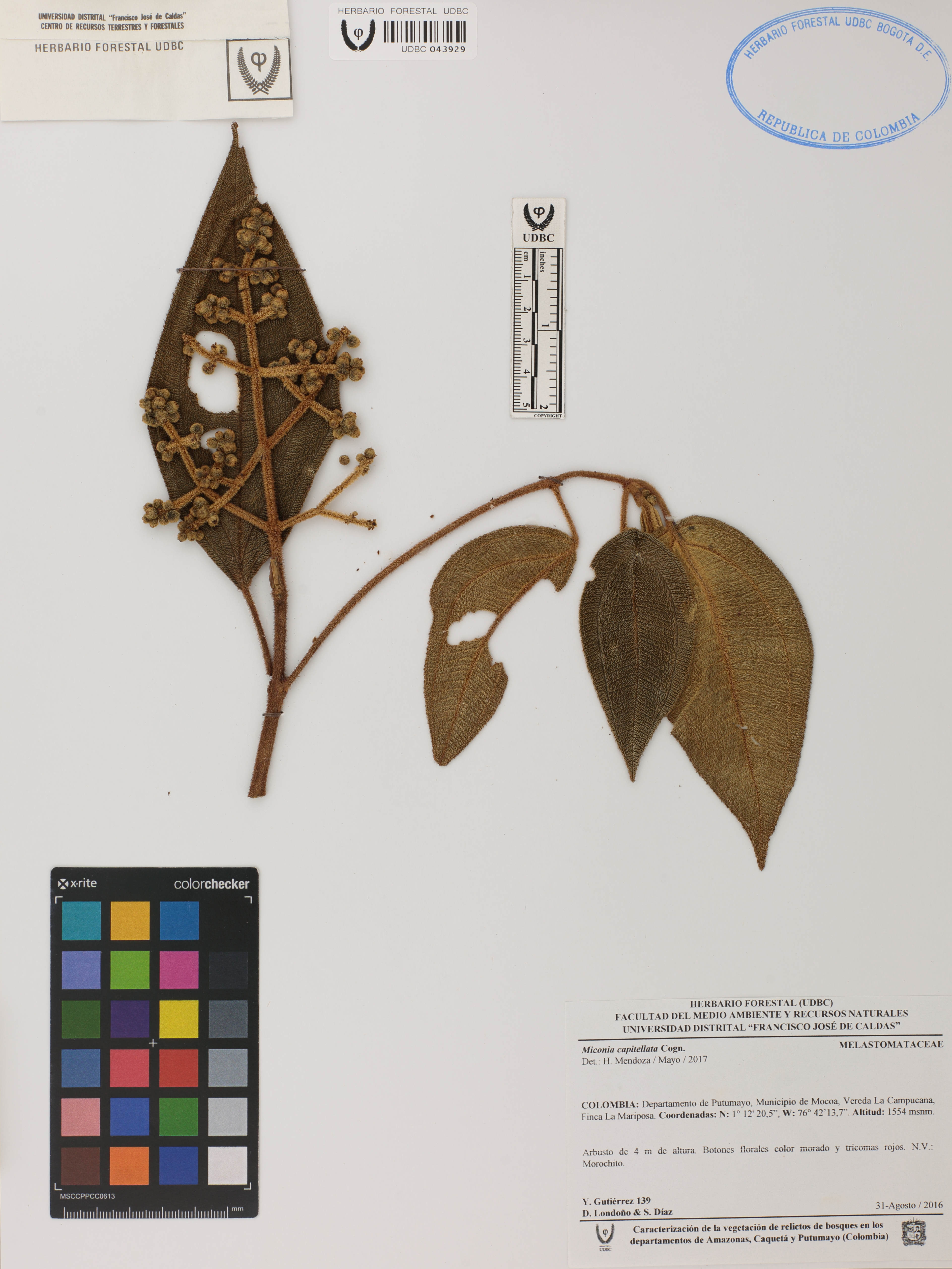 Fotografía del ejemplar Gutiérrez, Y. 139, determinado como Miconia capitellata en el año 2017