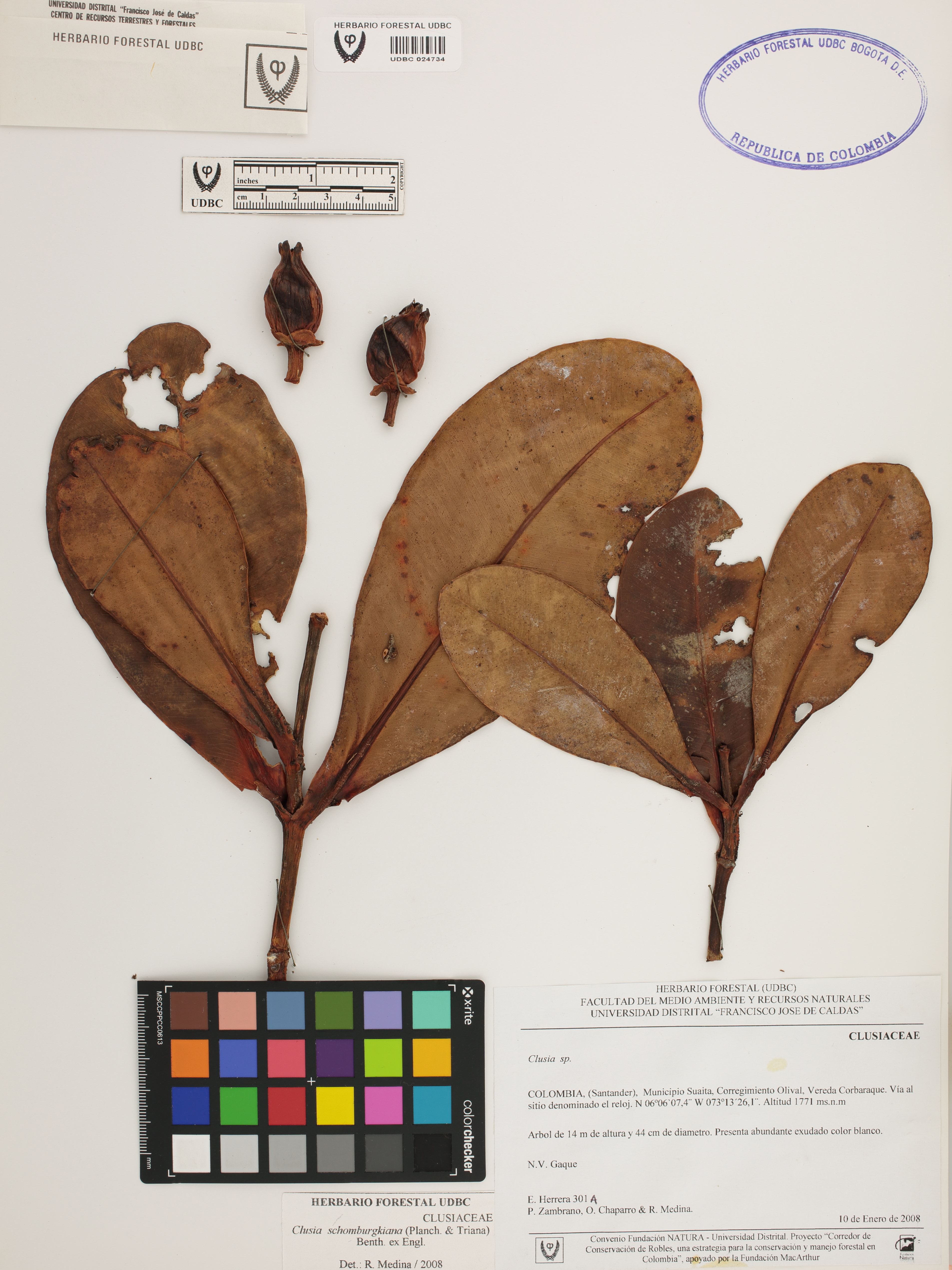 Fotografía del ejemplar Herrera, E. 301, determinado como Clusia schomburgkiana en el año 2008