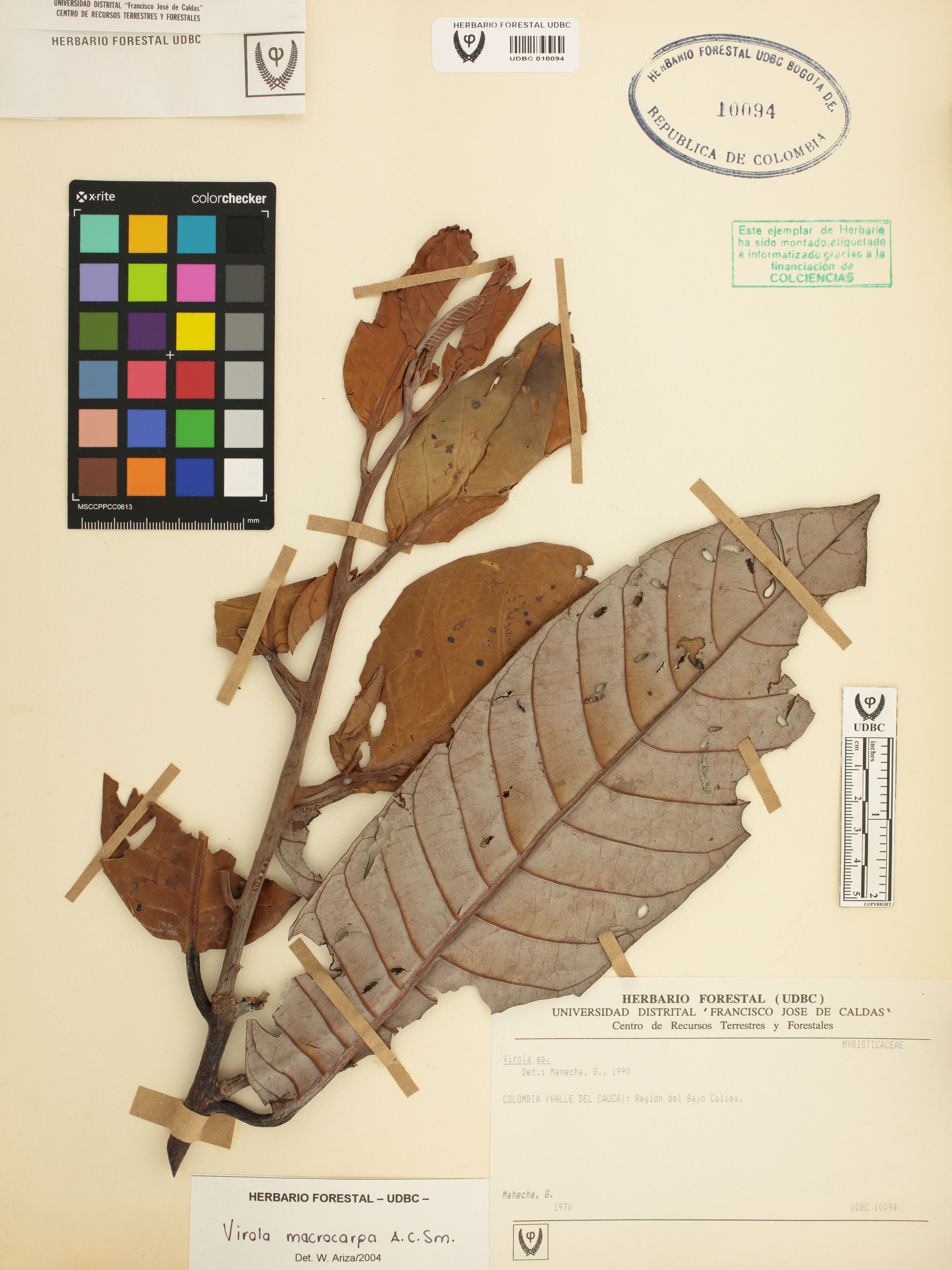 Fotografía del ejemplar Mahecha, G., determinado como Virola calimensis en el año 2022