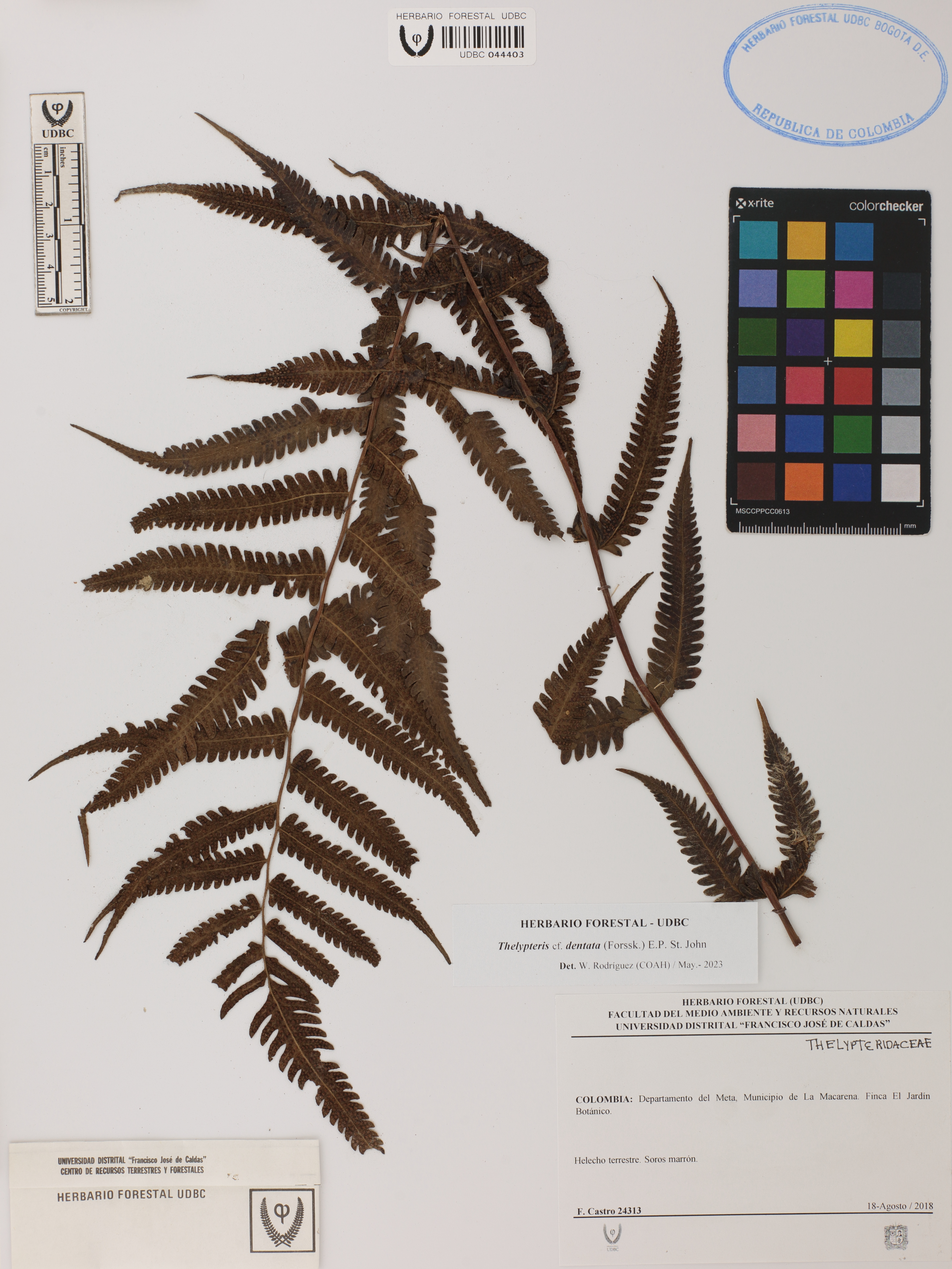 | dc.description | Fotografía del ejemplar Castro, F. 24313, determinado como Thelypteris dentata en el año 2023 | |