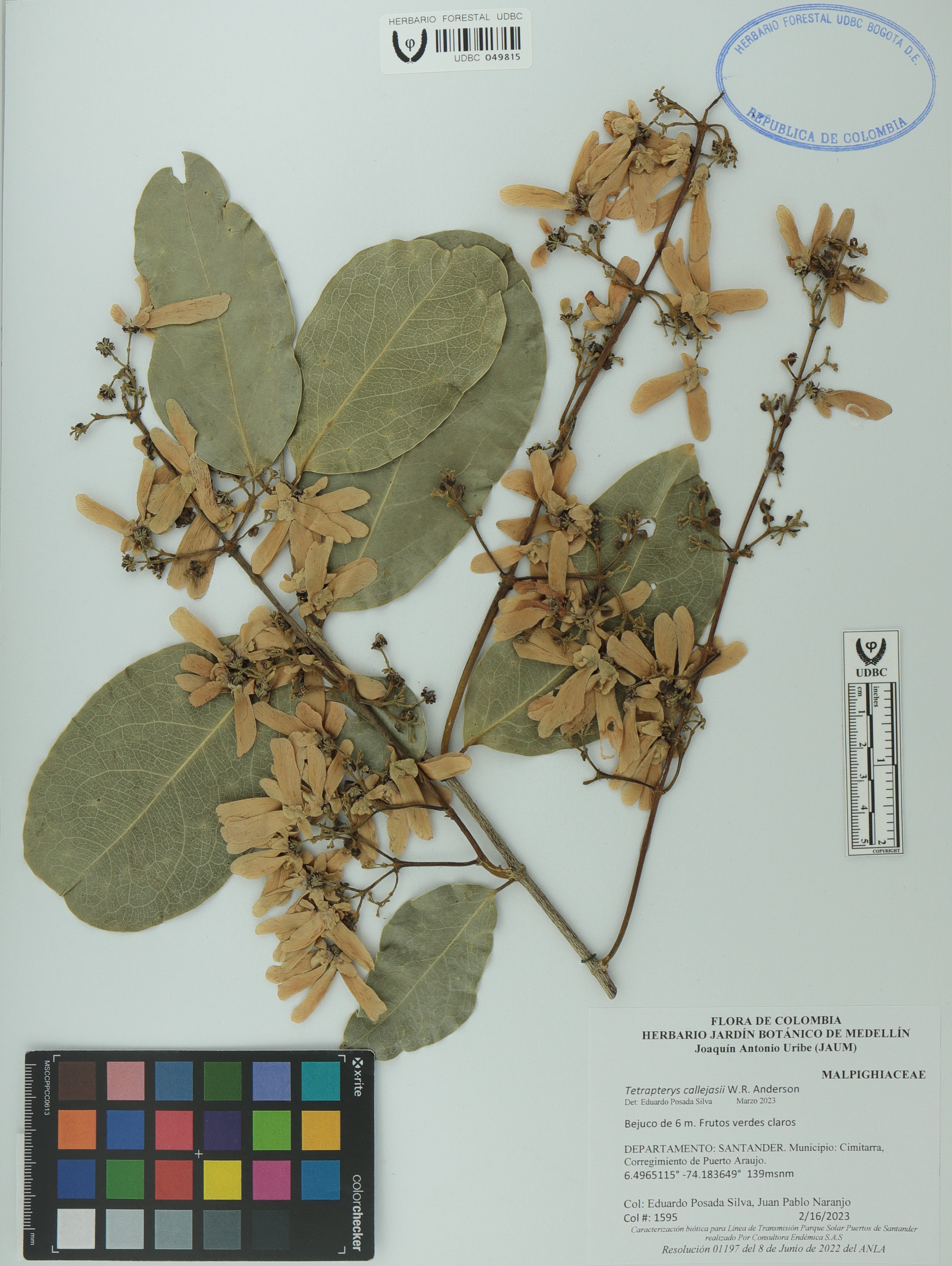 | dc.description | Fotografía del ejemplar Posada-S., E. 1595, determinado como Tetrapterys callejasii en el año 2023 | |