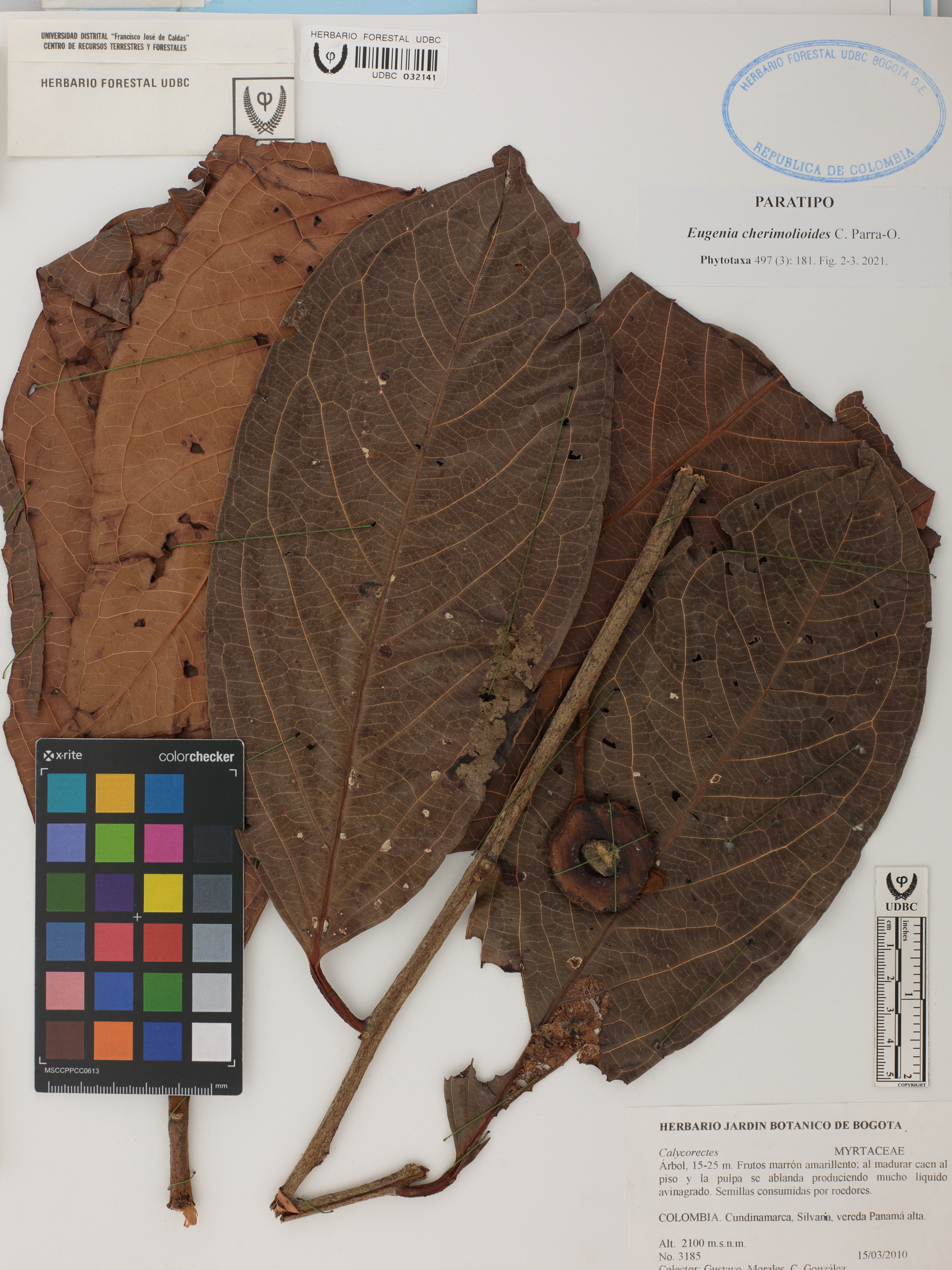 Fotografía del ejemplar Morales, G. 3185, Paratipo de Eugenia cherimolioides