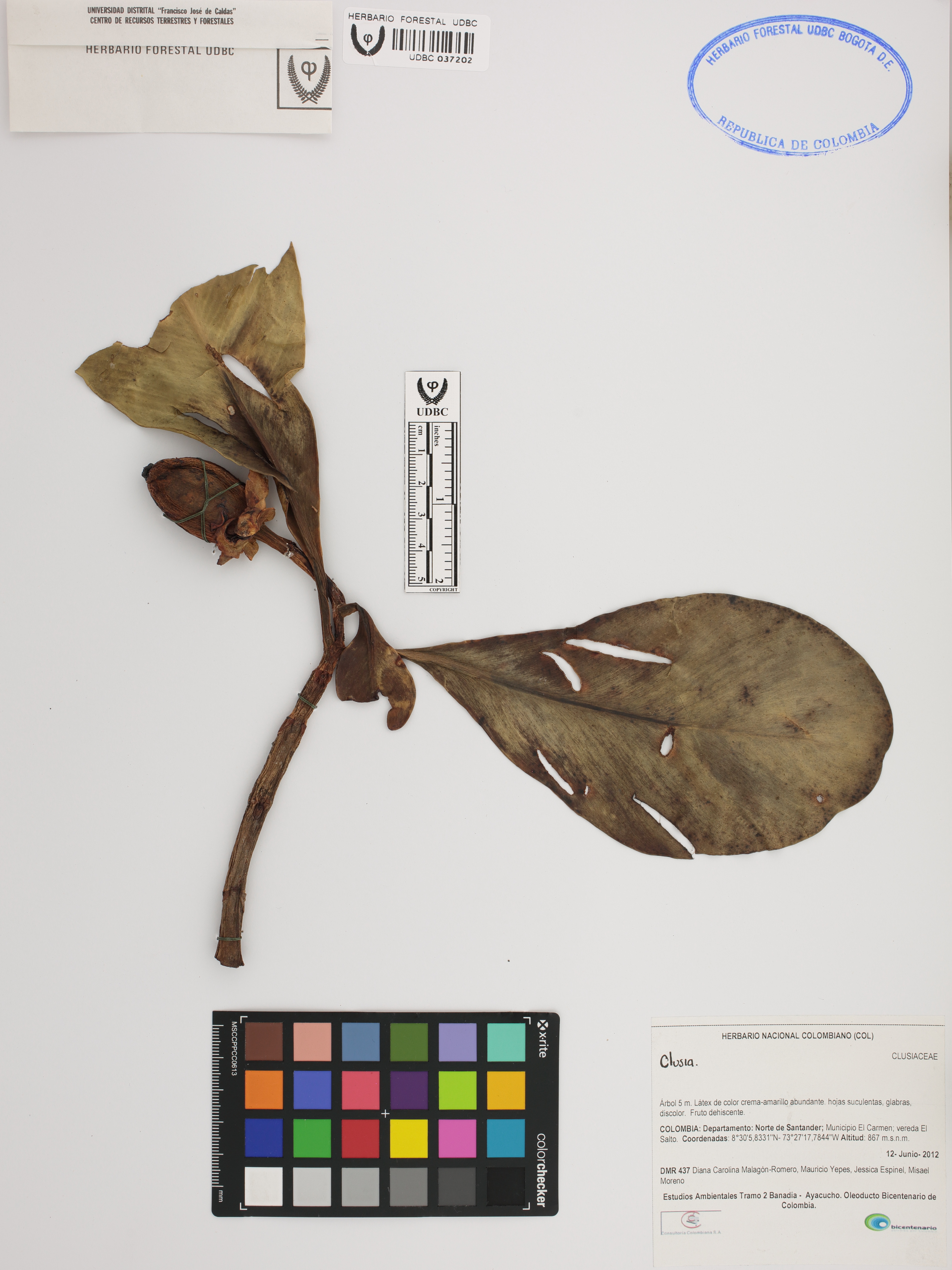 Fotografía del ejemplar Malagón-Romero, D. 437, determinado como Clusia sp.