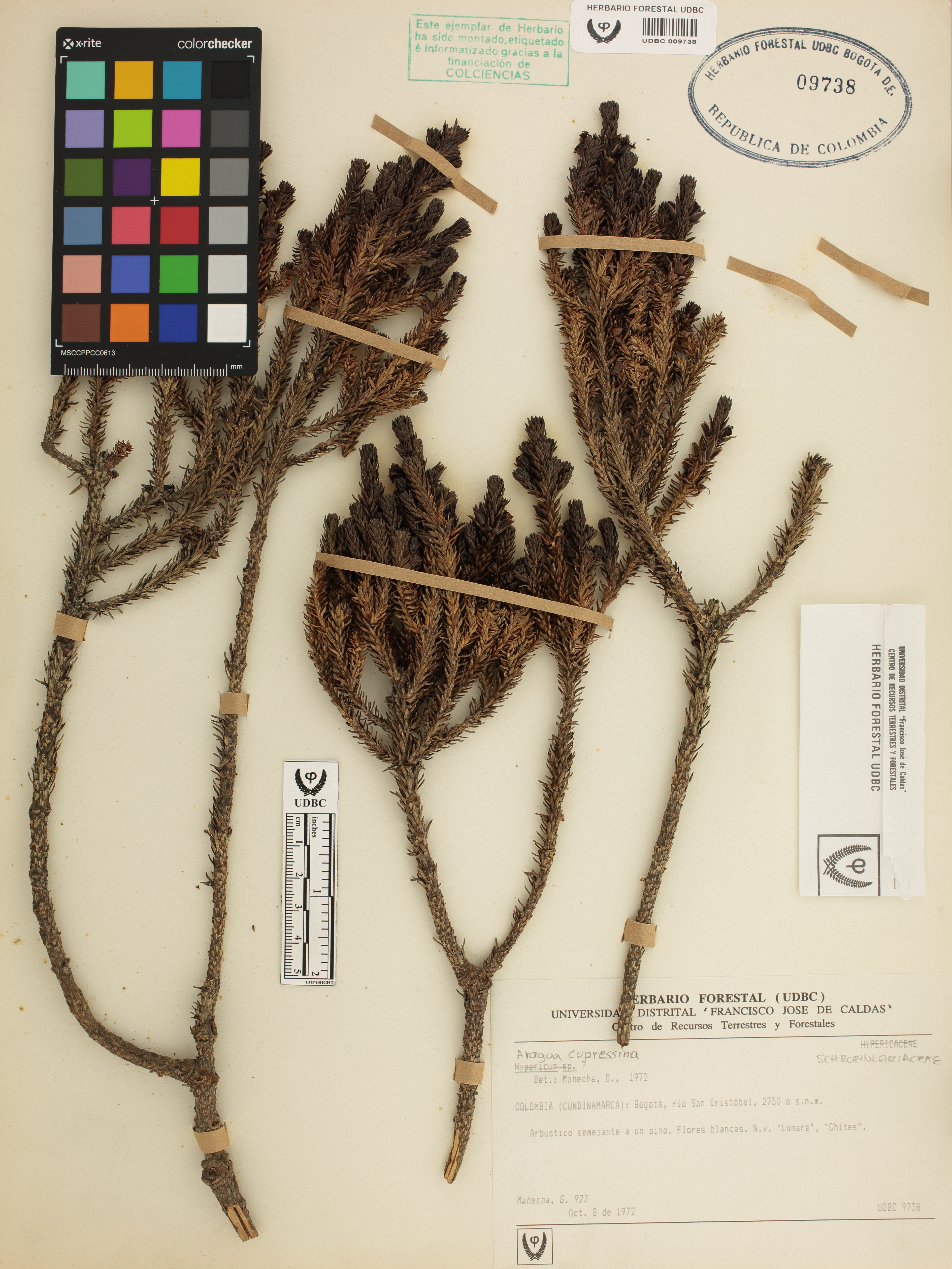 Fotografía del ejemplar Mahecha, G. 923, determinado como Aragoa cupressina en el año 1972
