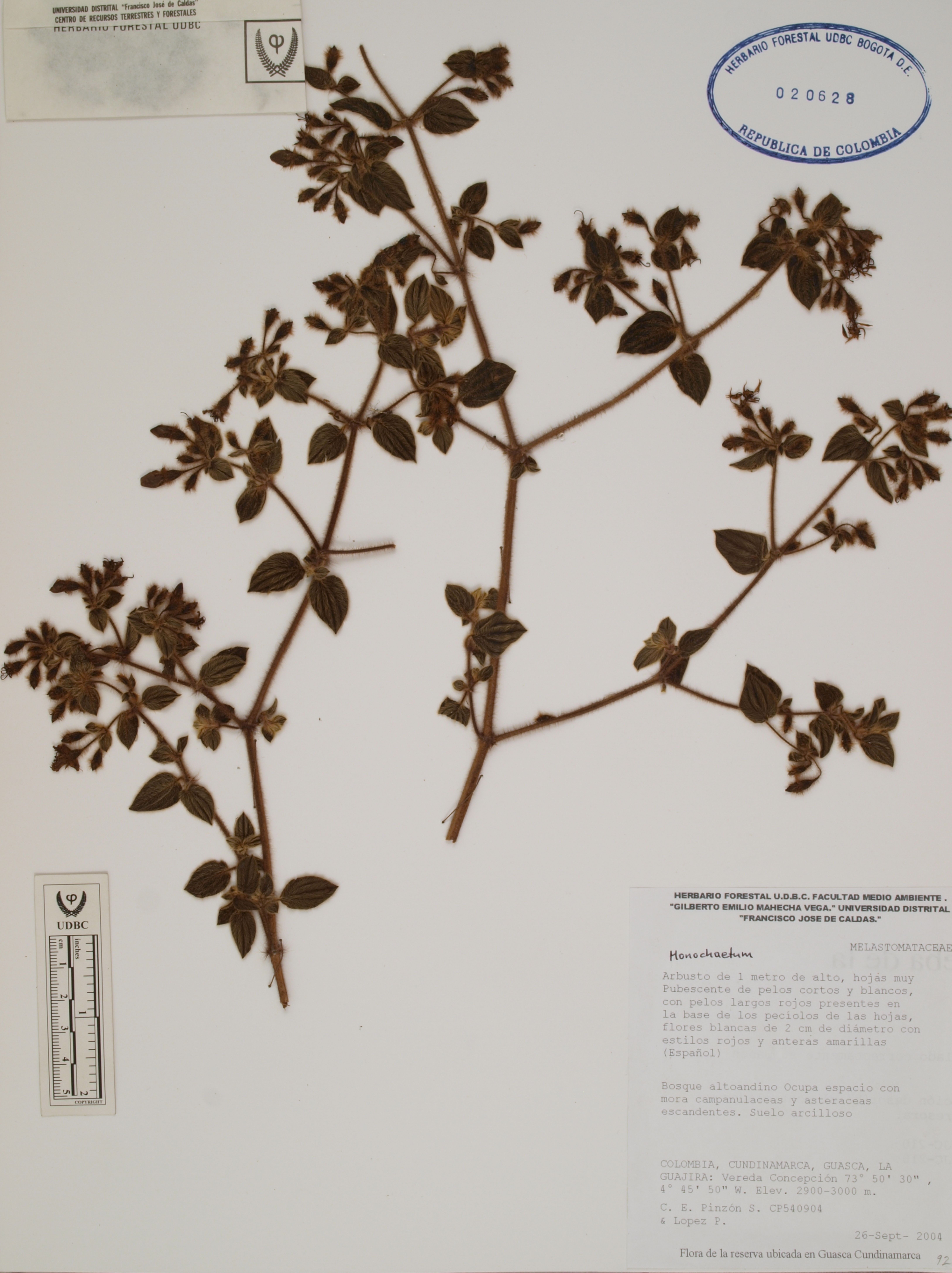 Fotografía del ejemplar Pinzón, C. 54, determinado como Monochaetum sp.