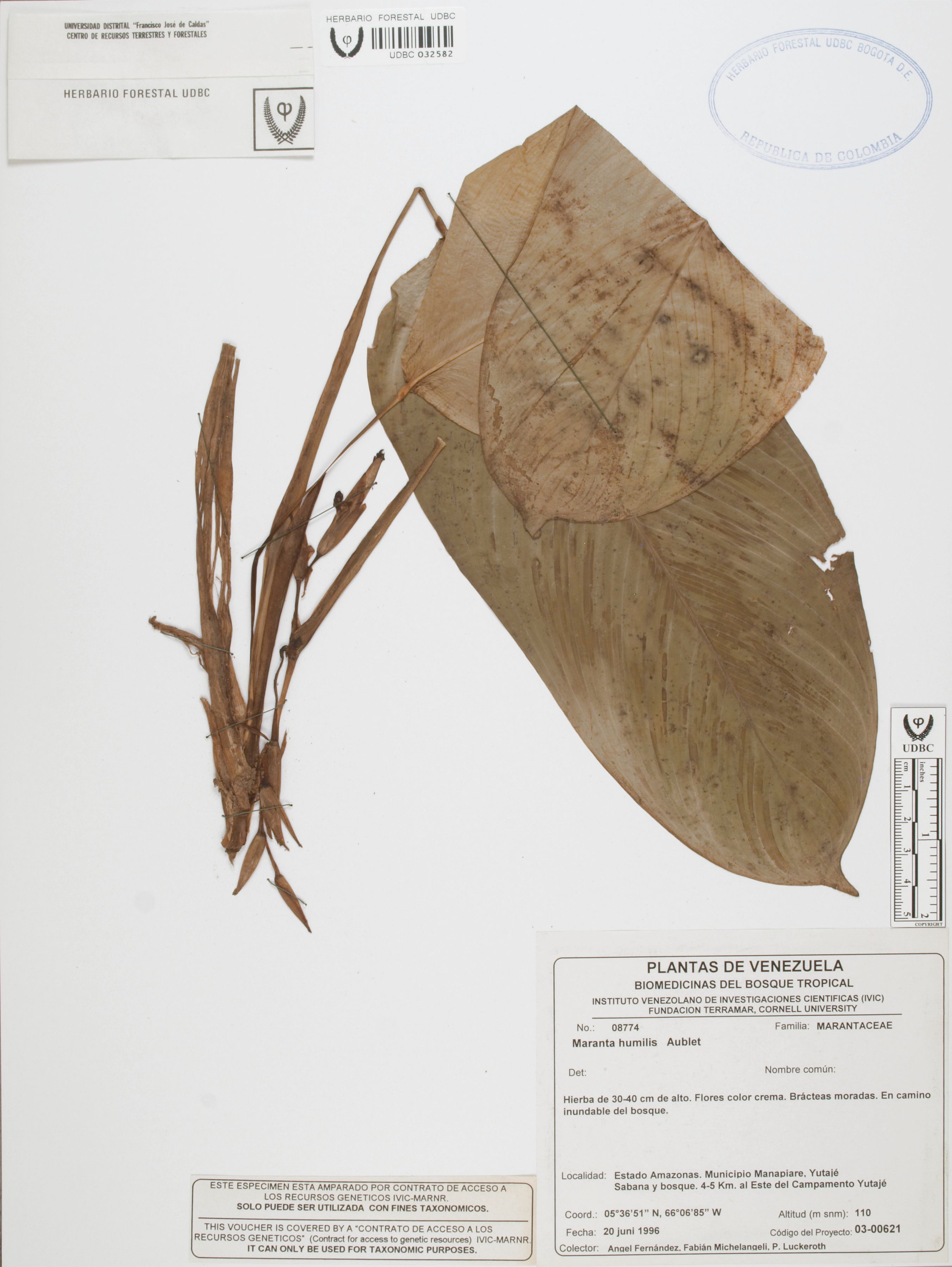 Fotografía del ejemplar Fernández, A. 8774, determinado como Maranta humilis