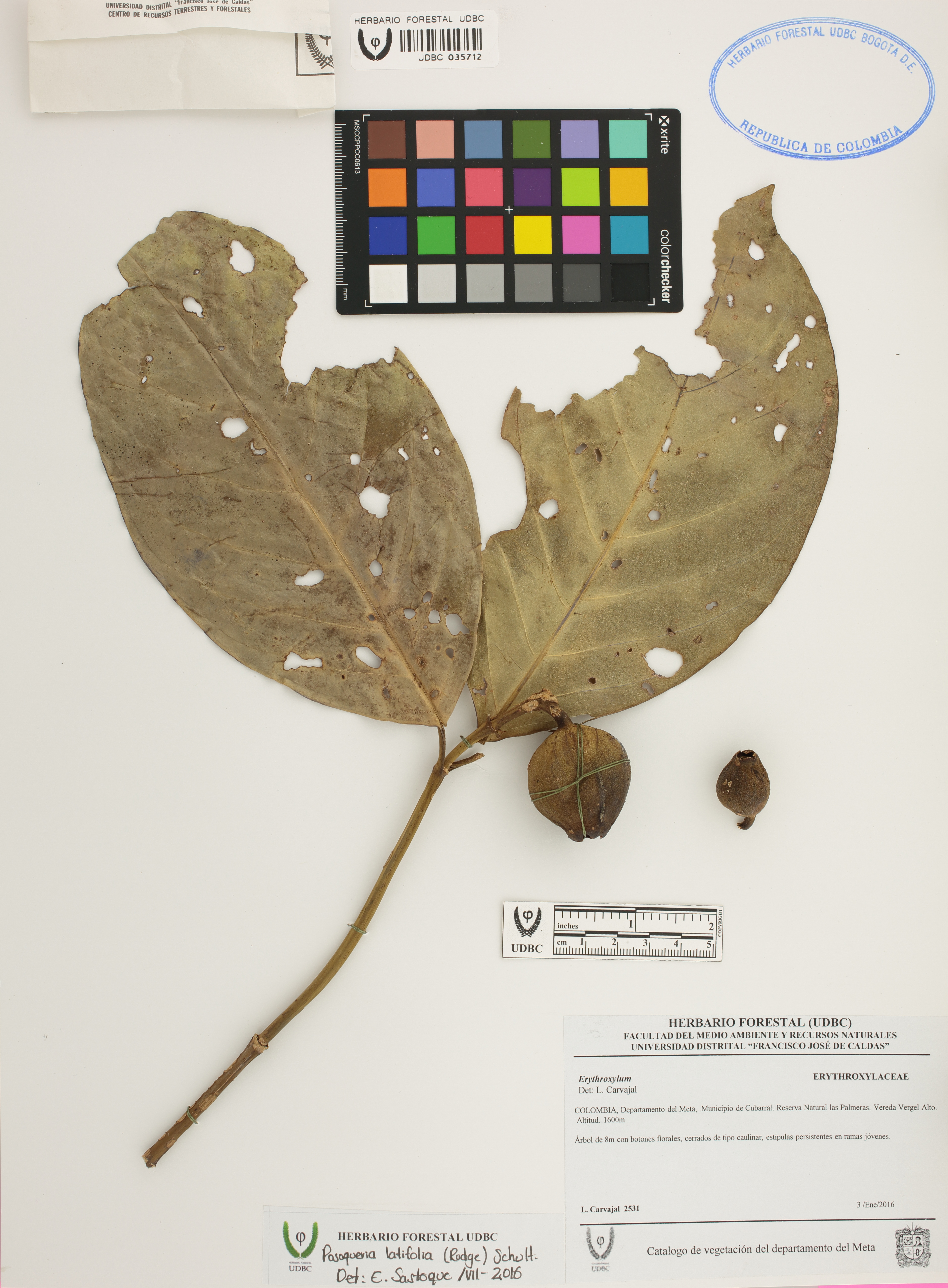 Fotografía del ejemplar Carvajal, L. 2531, determinado como Posoqueria latifolia en el año 2016
