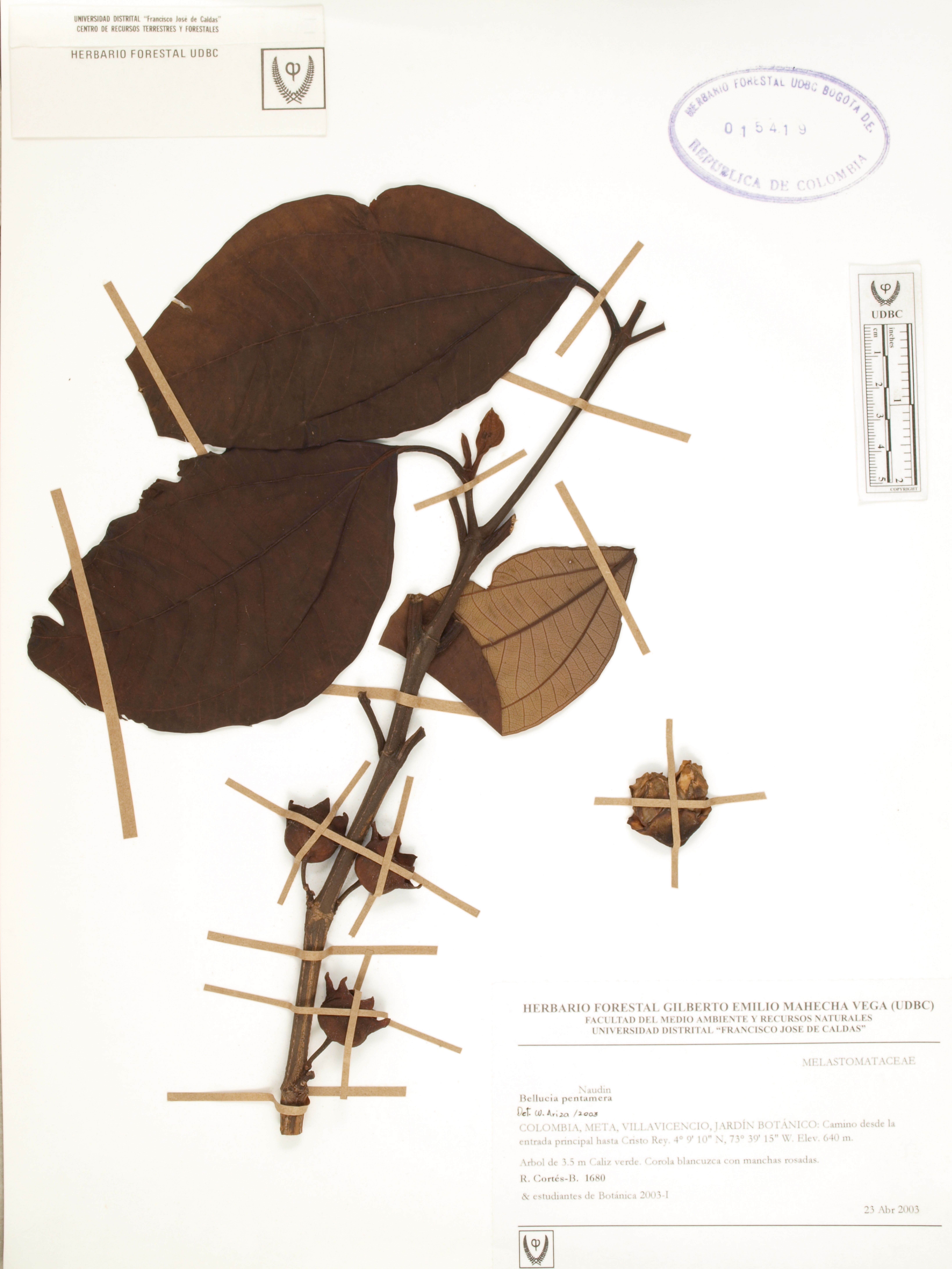Fotografía del ejemplar Cortés-B., R. 1680, determinado como Bellucia pentamera en el año 2004