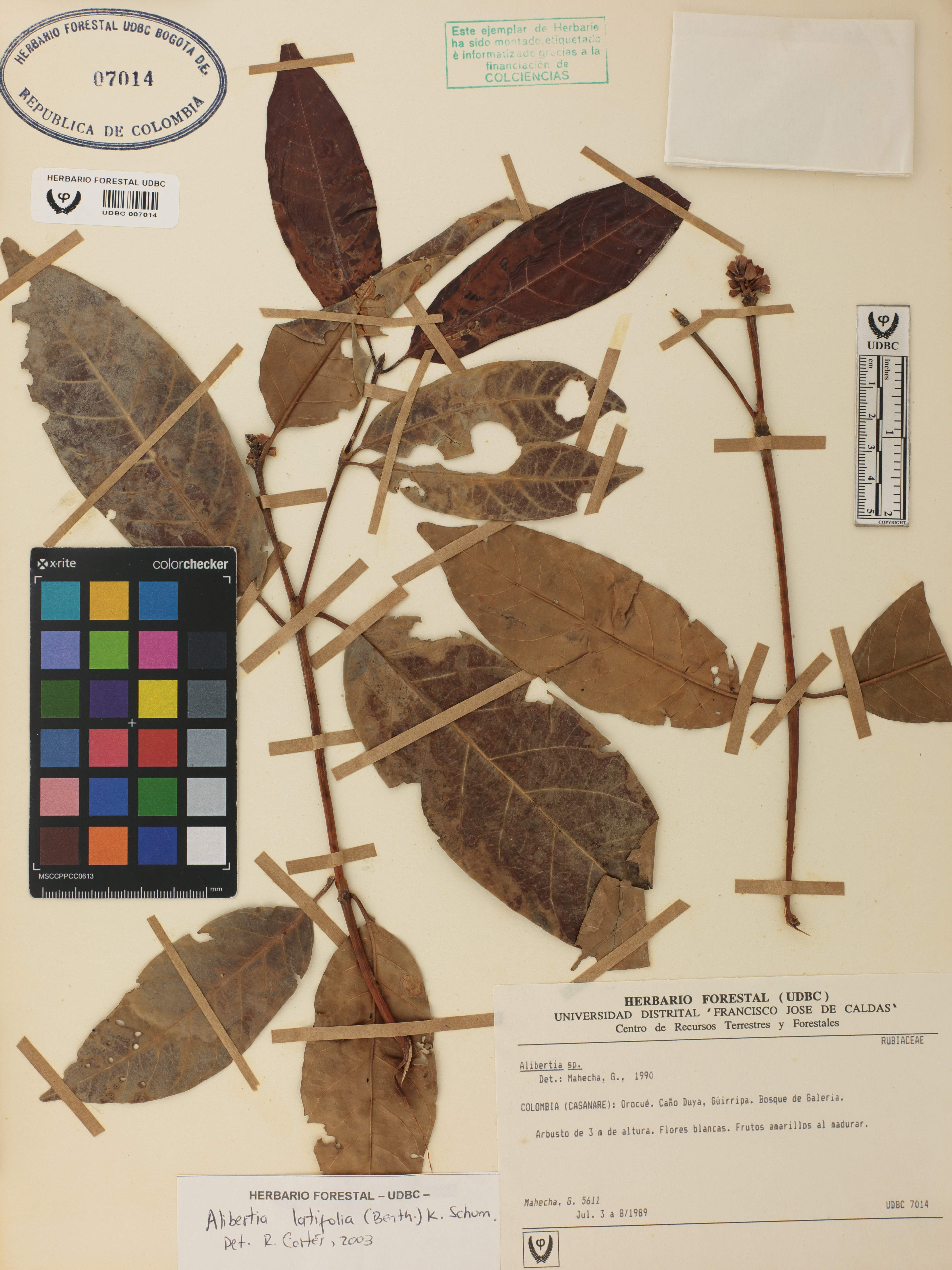 Fotografía del ejemplar Mahecha, G. 5611, determinado como Alibertia latifolia en el año 2003
