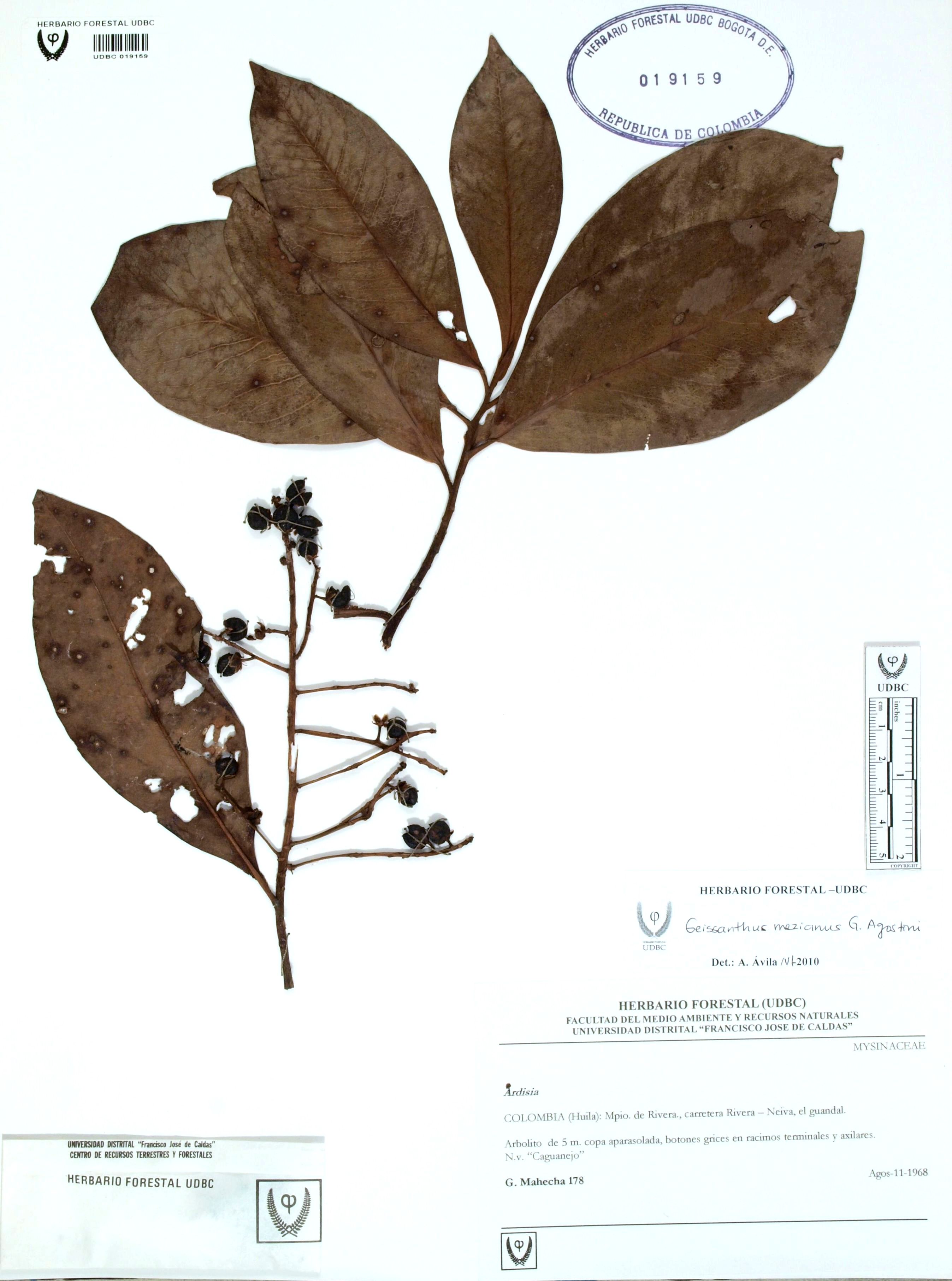 | dc.description | Fotografía del ejemplar Mahecha, G. 178, determinado como Geissanthus mezianus en el año 2010 | |
