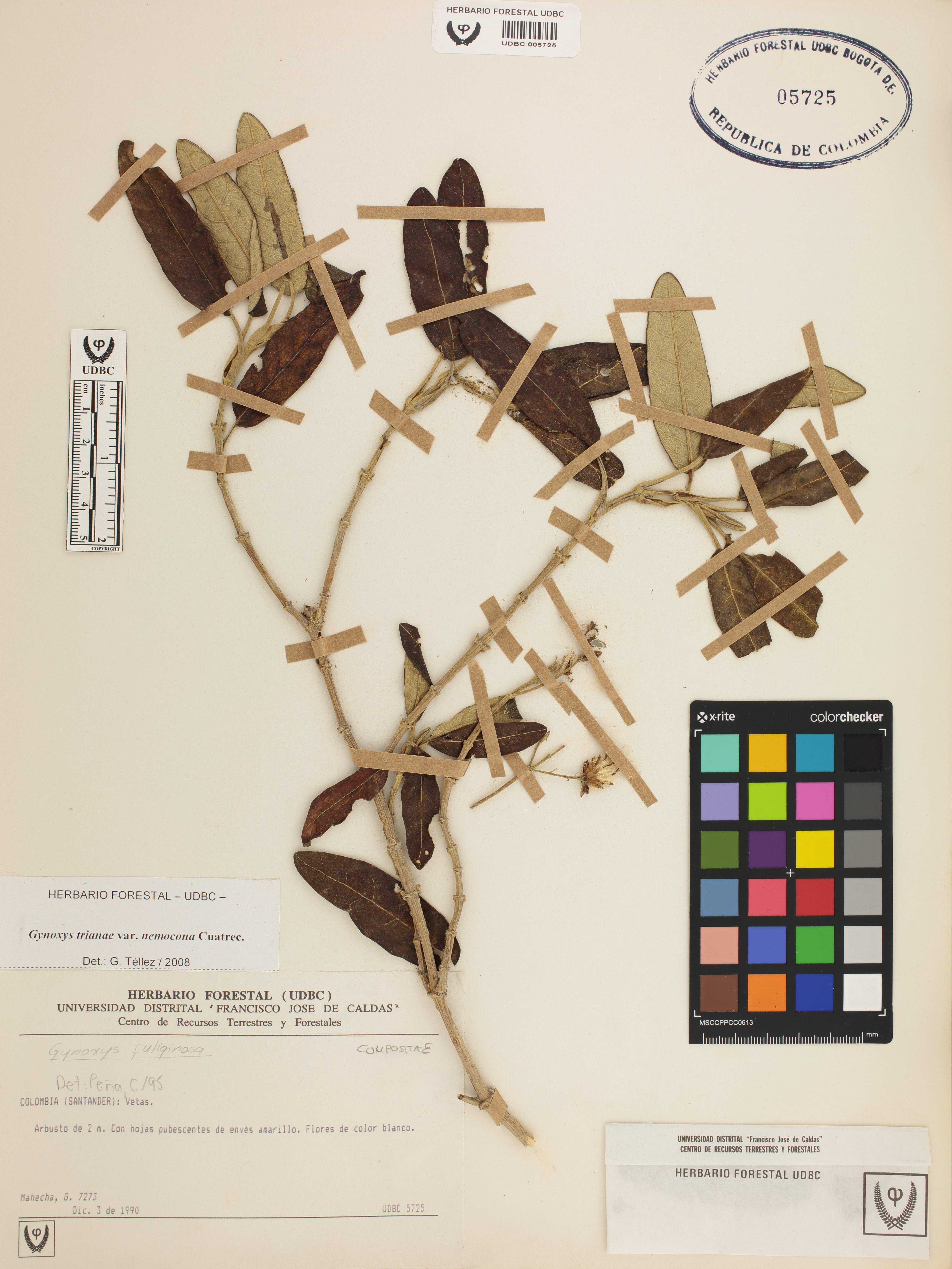 | dc.description | Fotografía del ejemplar Mahecha, G. 7273, determinado como Gynoxys trianae var. nemocona en el año 2008 | |