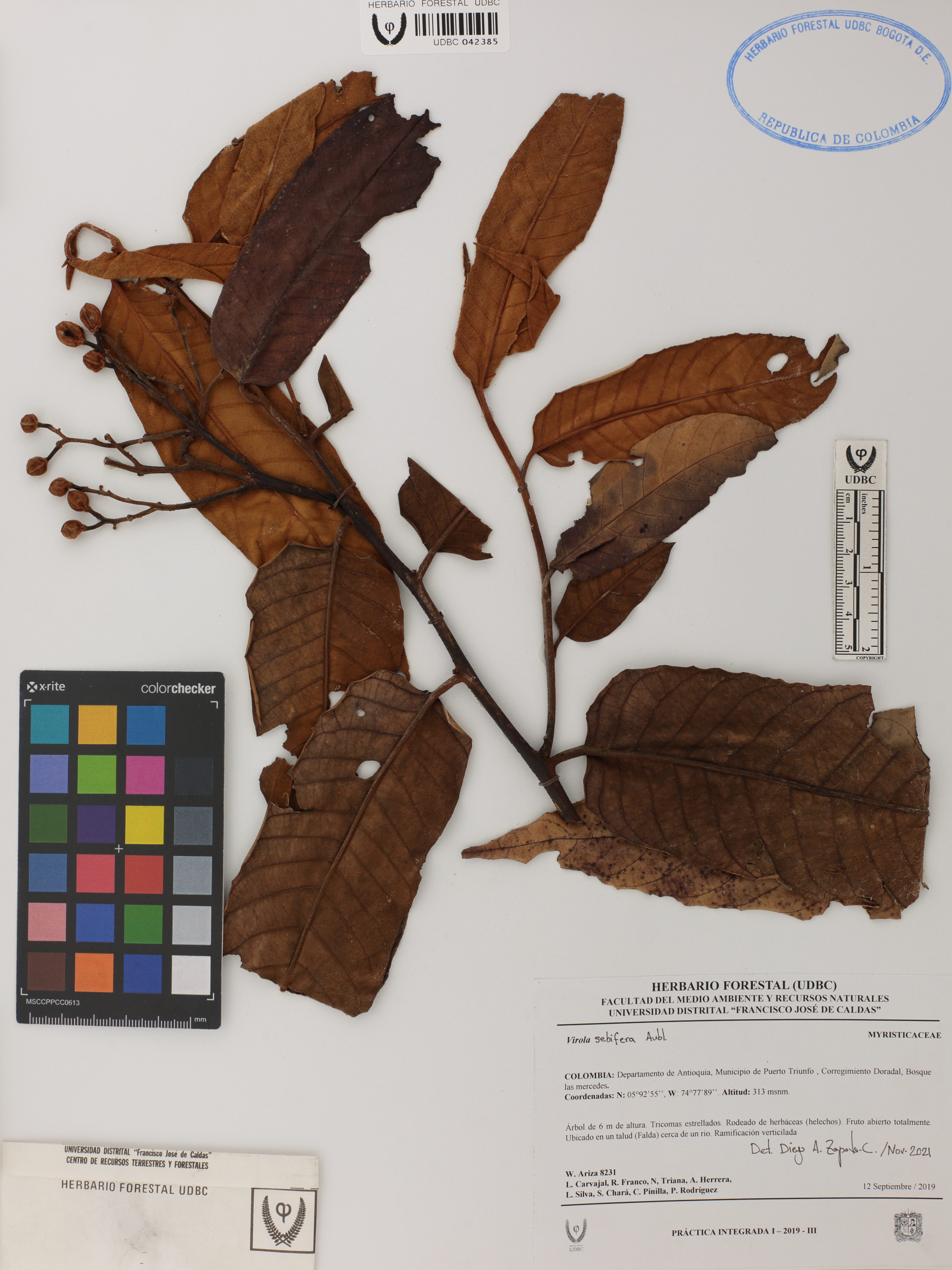 | dc.description | Fotografía del ejemplar Ariza, W. 8231, determinado como Virola sebifera en el año 2021 | |