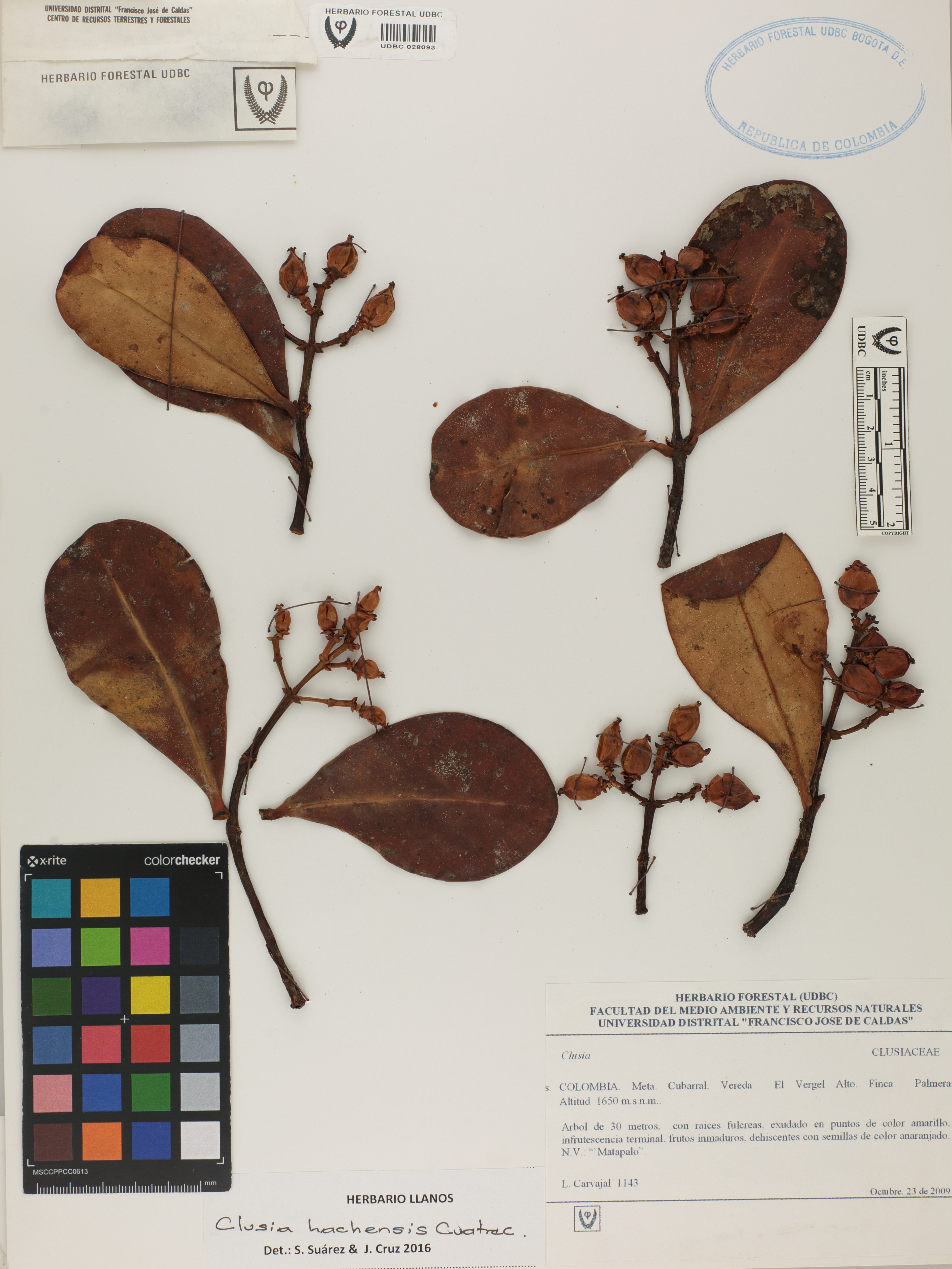 | dc.description | Fotografía del ejemplar Carvajal, L. 1143, determinado como Clusia hachensis en el año 2016 | |